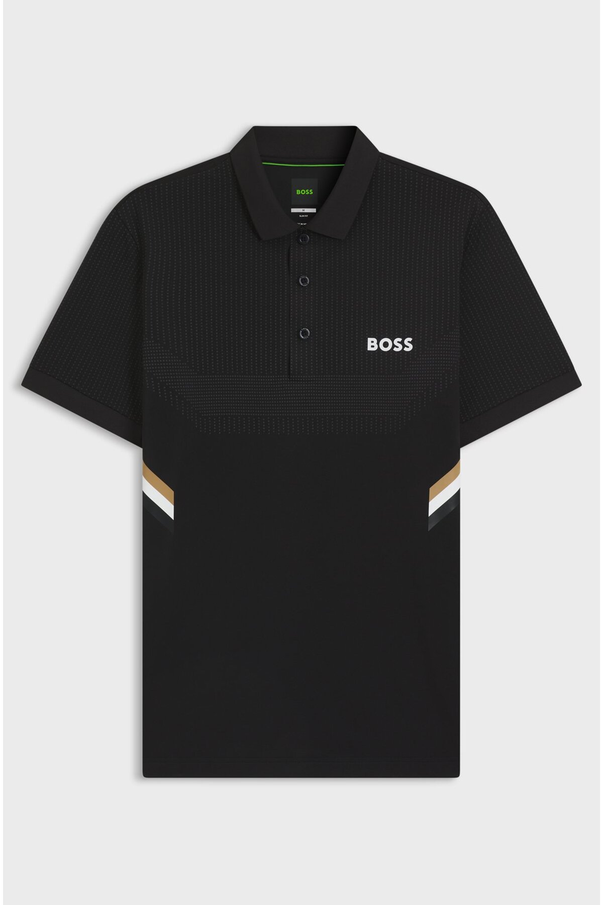 خرید اینترنتی تیشرت یقهدار مشکی آستین کوتاه راهراه برند سیگنچر، پارچهای فعال با قابلیت مدیریت رطوبت، مناسب برای آقایان برند باس BOSS اورجینال از Wejaar نمایندگی ترکیه