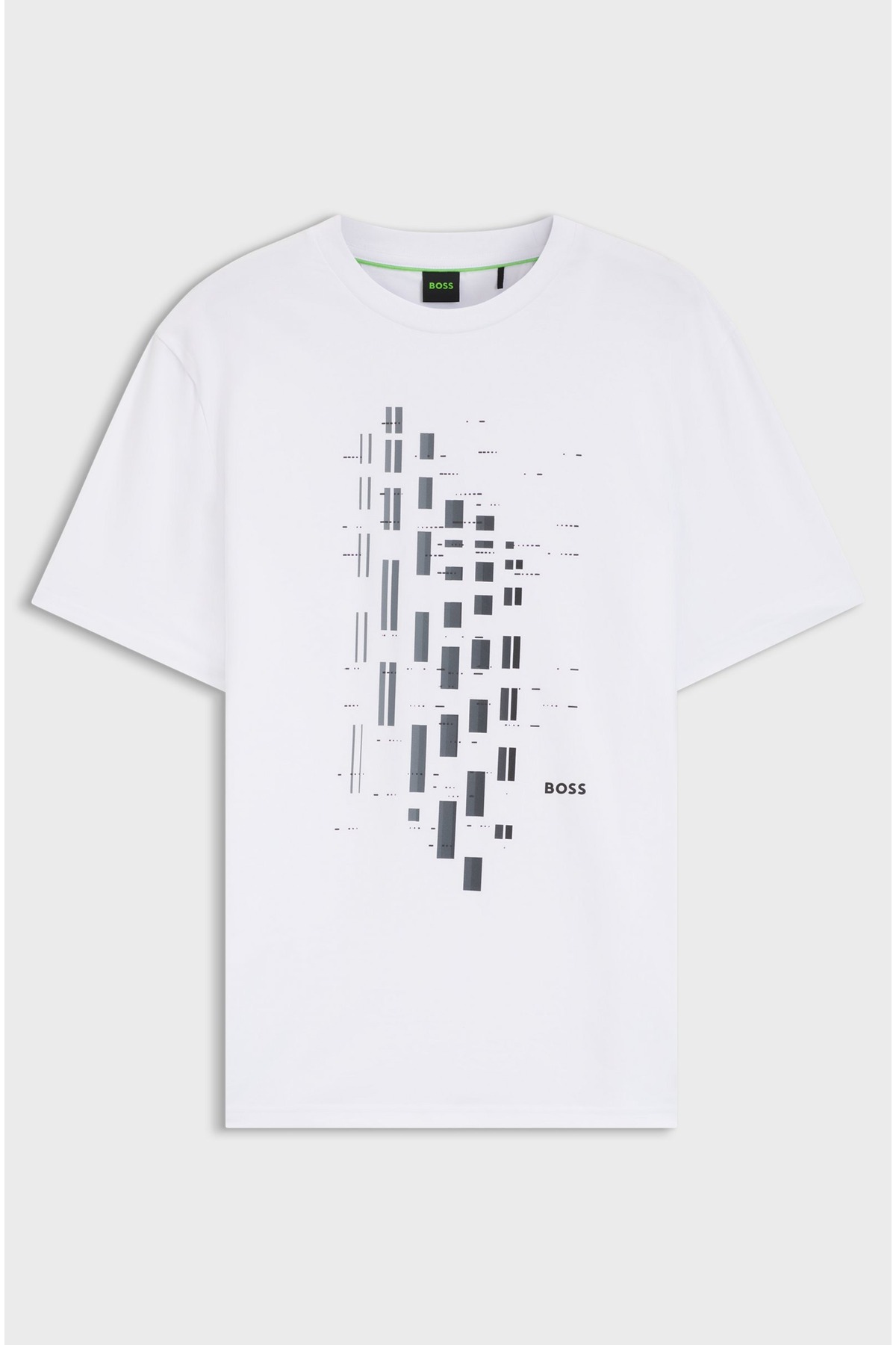 خرید اینترنتی تی‌شرت آستین کوتاه طرح‌دار گشاد سفید مردانه یقه گرد، راحت و گشاد، کد ۵۰۵۴۳۸۰۸-۱۰۰ برند باس BOSS اورجینال از BOSS نمایندگی و فروشگاه معتبر ترکیه
