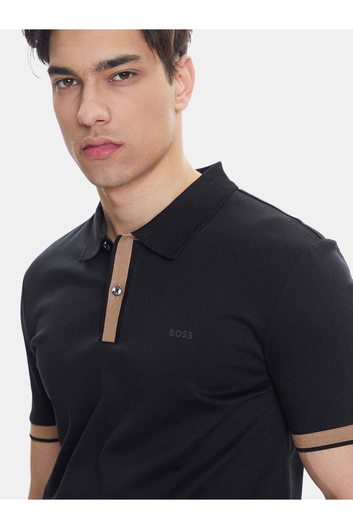 خرید اینترنتی پولو شرت مردانه با دکمه بسته میشود، جزئیات رنگی روی یقه و سرآستین، پولو شرت مشکی 50543865-001 برند باس BOSS اورجینال از Wejaar نمایندگی و فروشگاه معتبر ترکیه