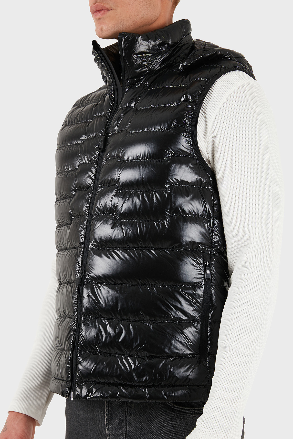خرید اینترنتی جلیقه پفی براق، کلاه دار، دافع آب، لحاف دوزی شده، مردانه، مدل ۵۰۵۴۸۸۴۸ ۰۰۱ برند باس BOSS اورجینال از ExxeSelection نمایندگی ترکیه