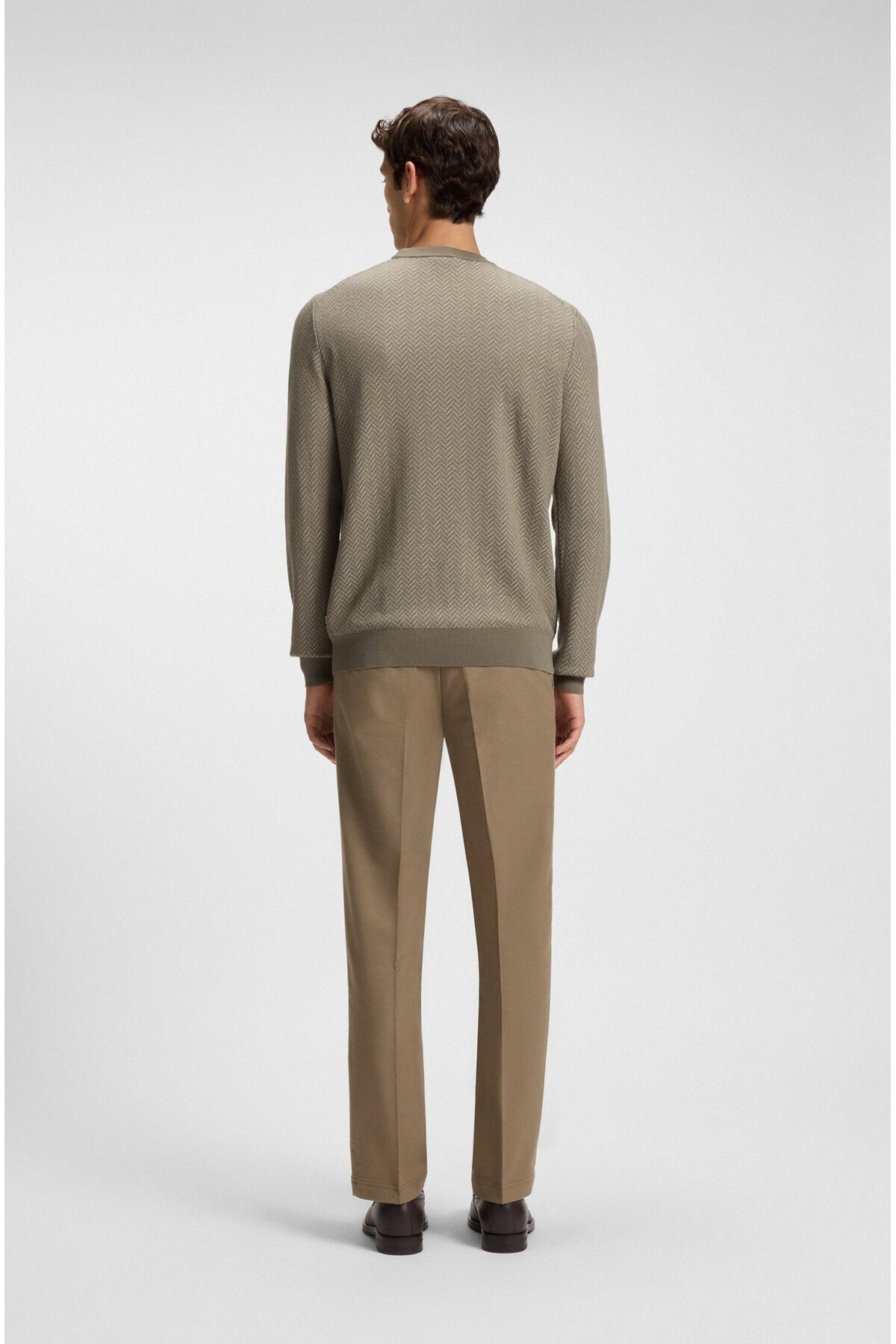 خرید اینترنتی ژاکت بافتدار مردانه طرح هرینگبون، طرح ترکیبی پشم و پنبه، سایز معمولی، قهوهای روشن، کد ۵۰۵۴۹۹۸۵-۲۴۵ برند باس BOSS اورجینال از Wejaar نمایندگی و فروشگاه معتبر ترکیه