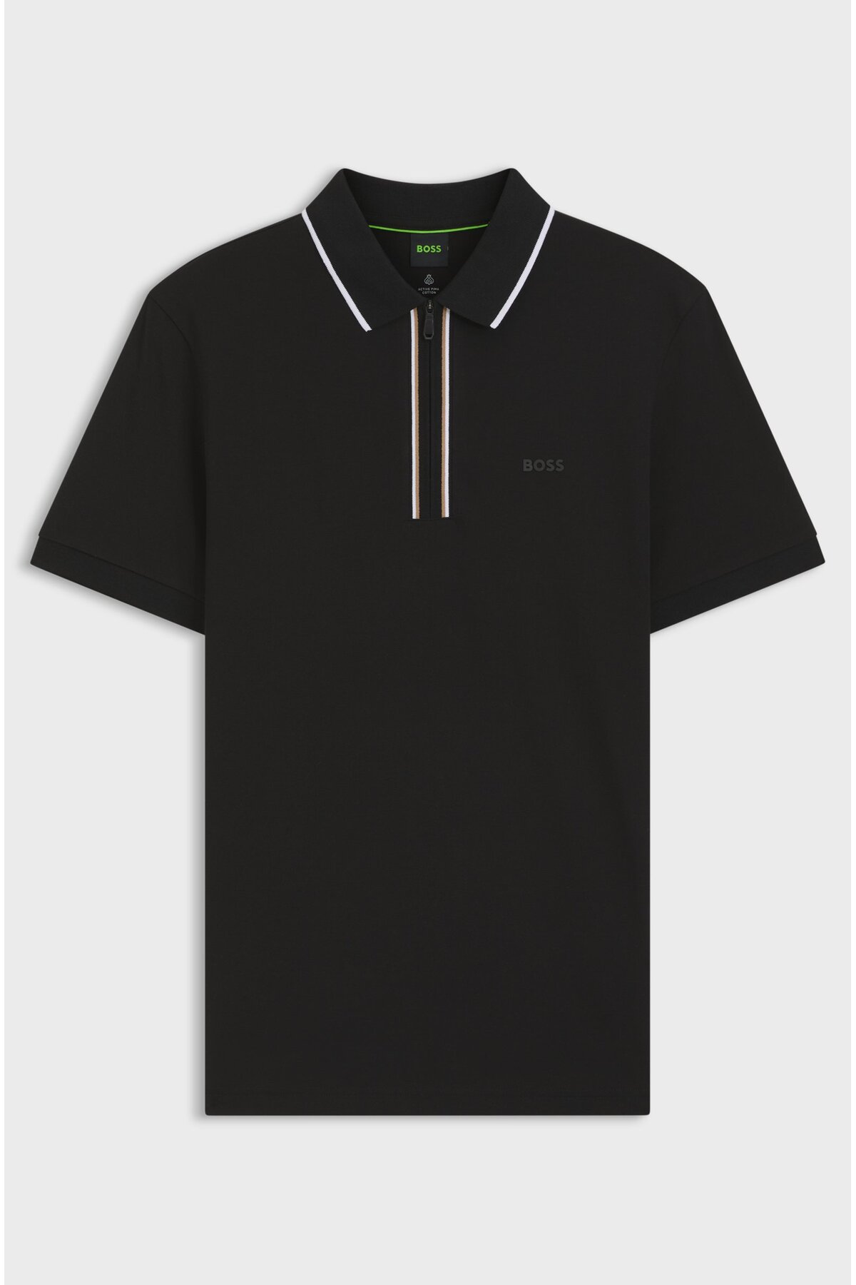 خرید اینترنتی تیشرت یقهدار مردانه آستین کوتاه، نخی انعطافپذیر، رطوبتگیر و ضد تعریق، مشکی، کد ۵۰۵۵۵۶۹۸-۰۰۱ برند باس BOSS اورجینال از JEANSLAB نمایندگی ترکیه
