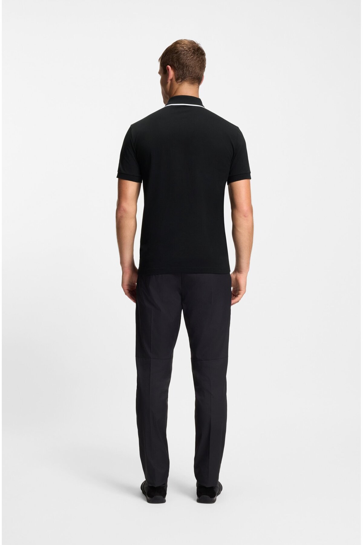 خرید اینترنتی تیشرت یقهدار مردانه آستین کوتاه، نخی انعطافپذیر، رطوبتگیر و ضد تعریق، مشکی، کد ۵۰۵۵۵۶۹۸-۰۰۱ برند باس BOSS اورجینال از JEANSLAB نمایندگی و فروشگاه معتبر ترکیه