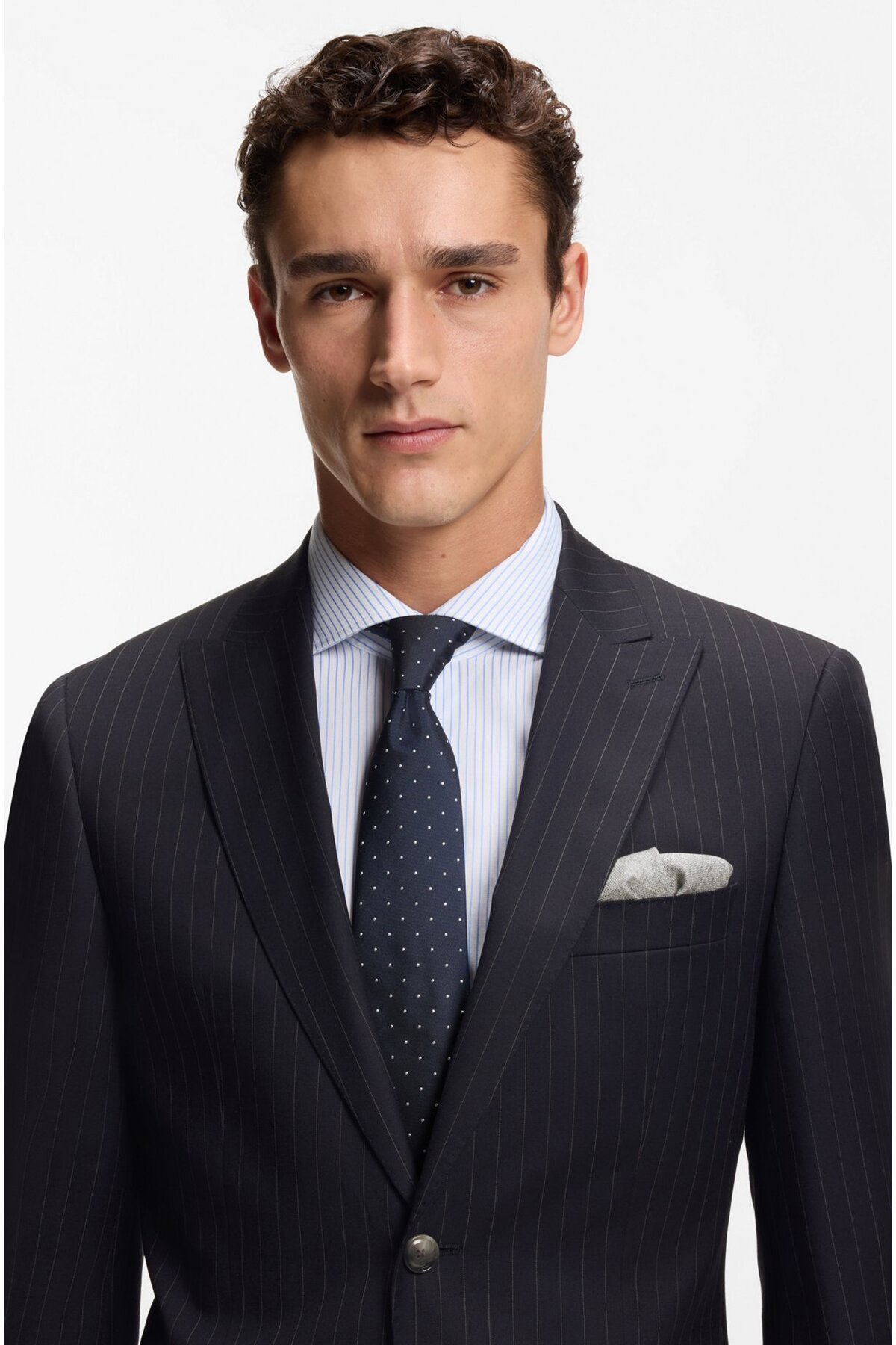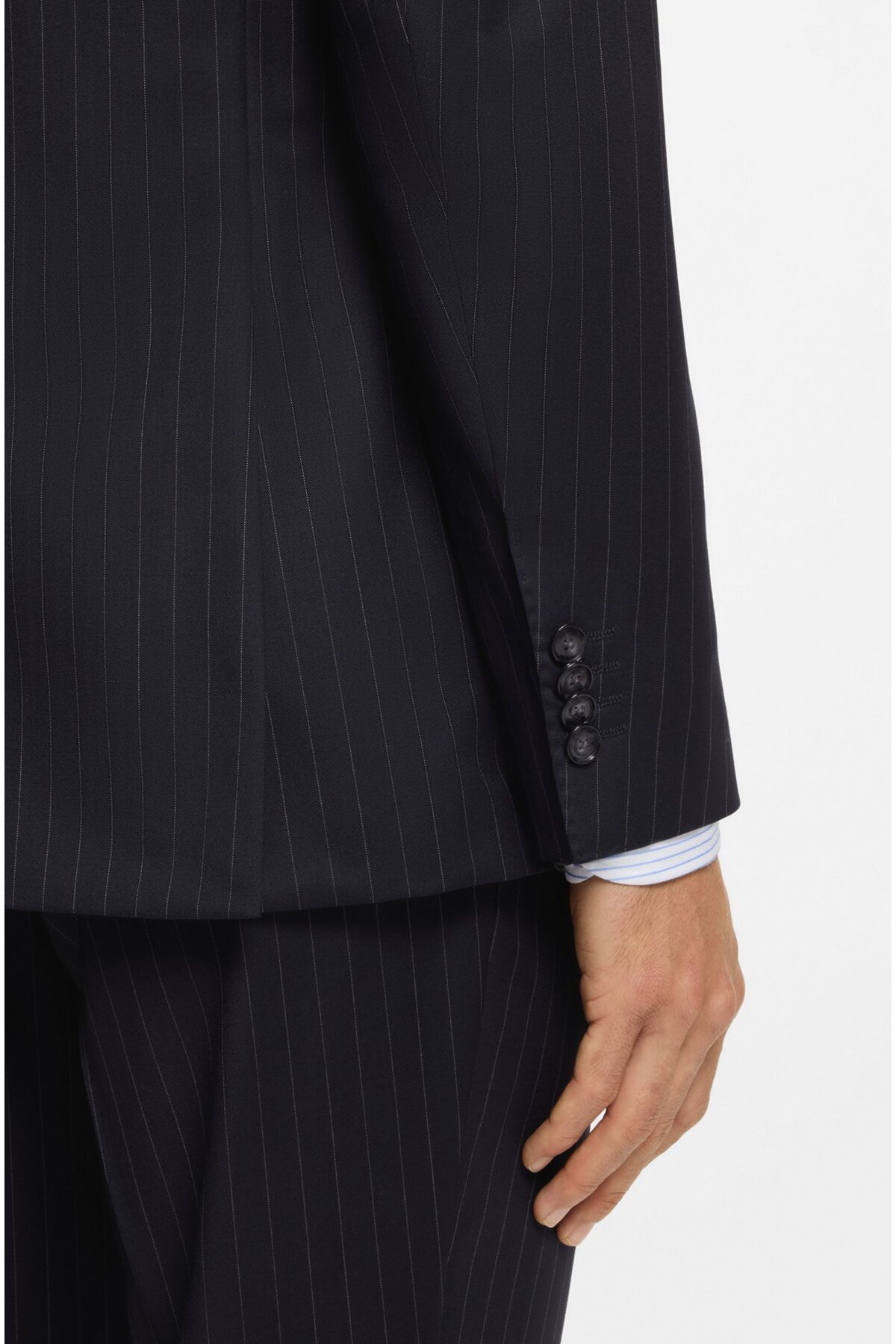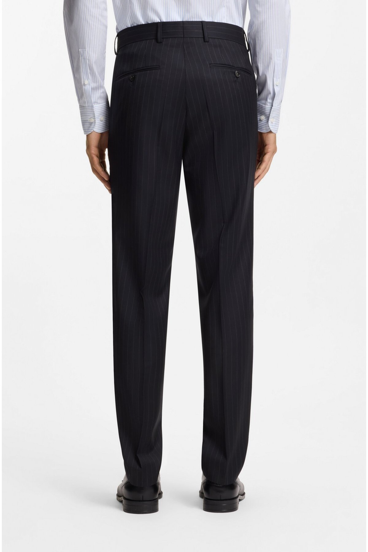 خرید اینترنتی کت و شلوار مردانه یقه تیز، پارچه پشمی خالص راه راه، سایز معمولی سرمهای، کد ۵۰۵۵۷۲۴۵-۴۰۴ برند باس BOSS اورجینال از Wejaar نمایندگی ترکیه