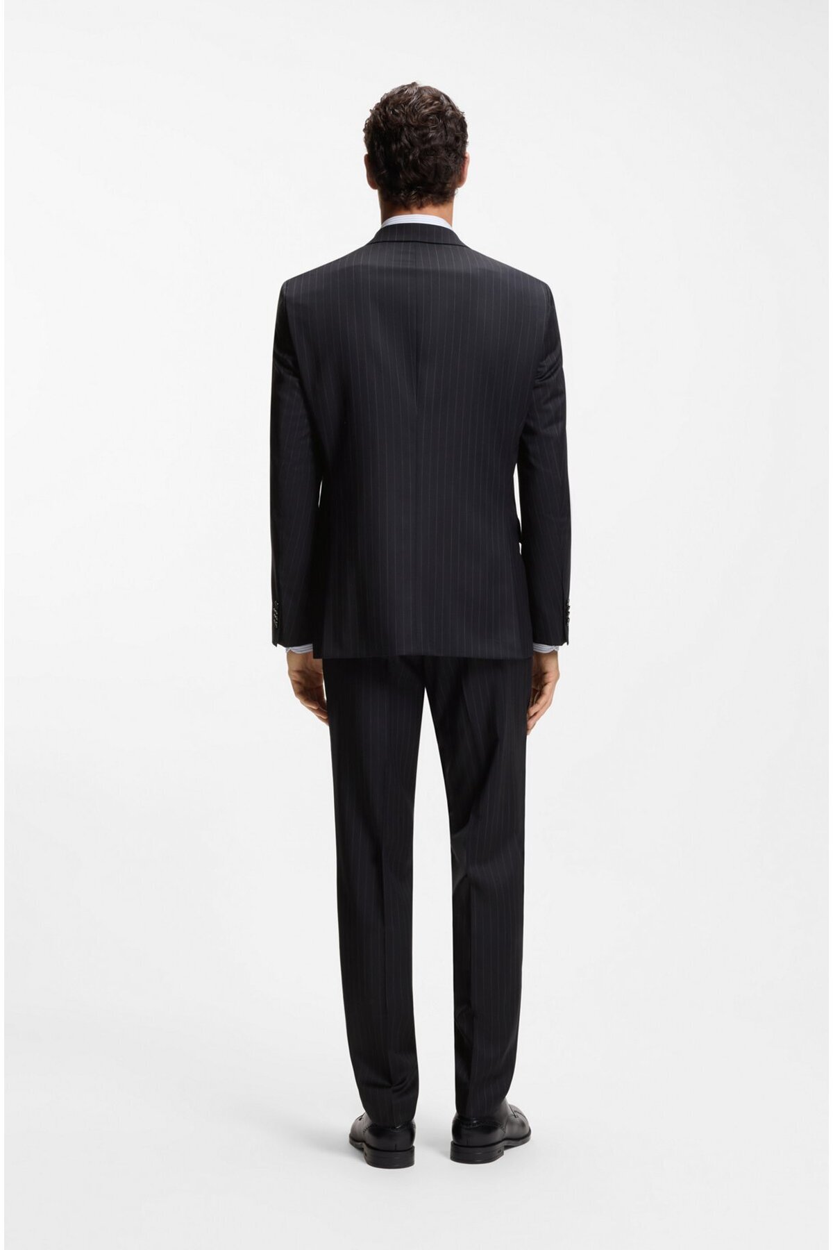 خرید اینترنتی کت و شلوار مردانه یقه تیز، پارچه پشمی خالص راه راه، سایز معمولی سرمهای، کد ۵۰۵۵۷۲۴۵-۴۰۴ برند باس BOSS اورجینال از Wejaar نمایندگی و فروشگاه معتبر ترکیه
