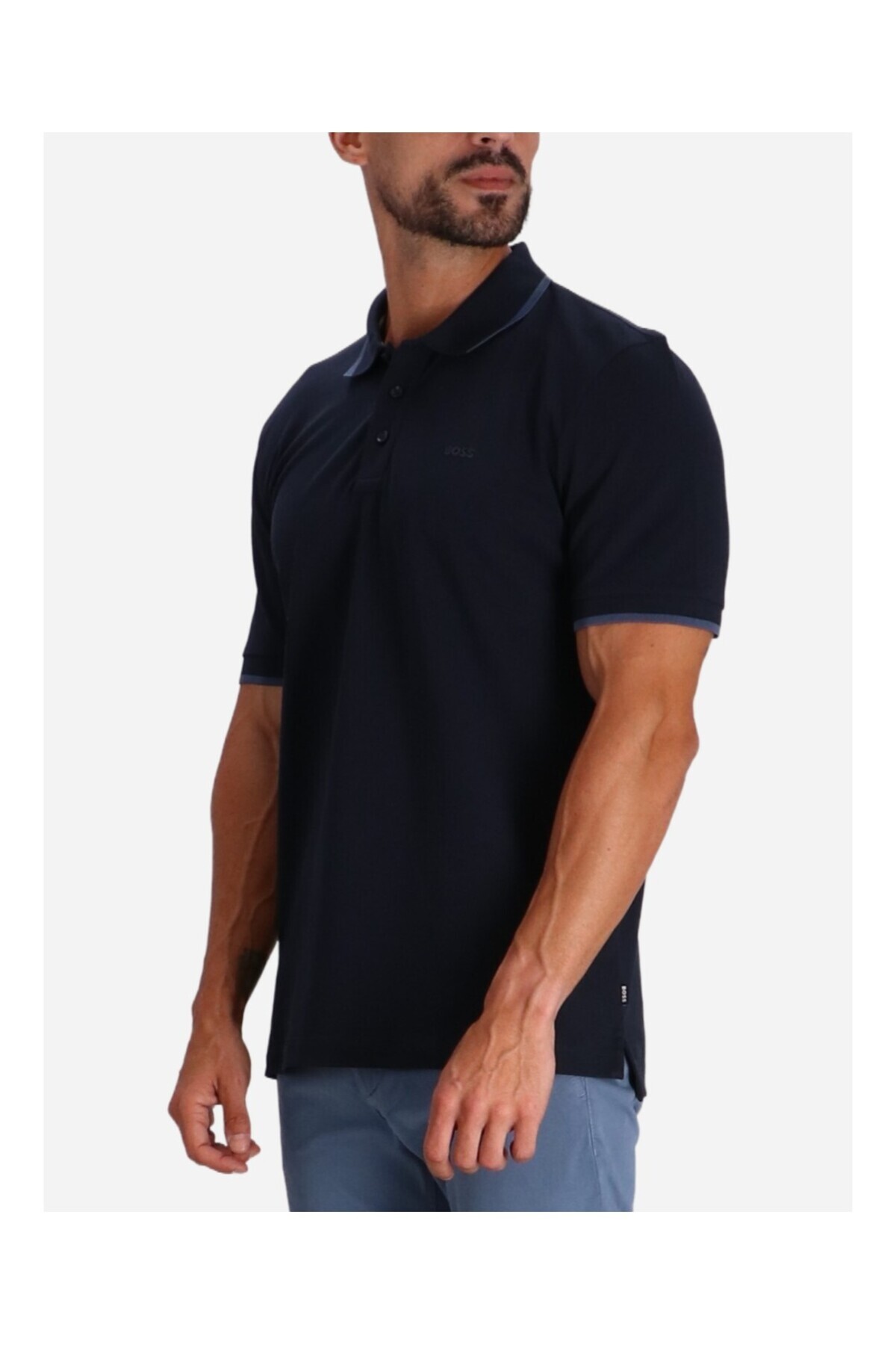 خرید اینترنتی تیشرت مردانه یقه پولو نخی آستین کوتاه سرمهای کد ۵۰۴۹۴۶۹۷-۴۰۸ برند باس BOSS اورجینال از Wejaar نمایندگی ترکیه