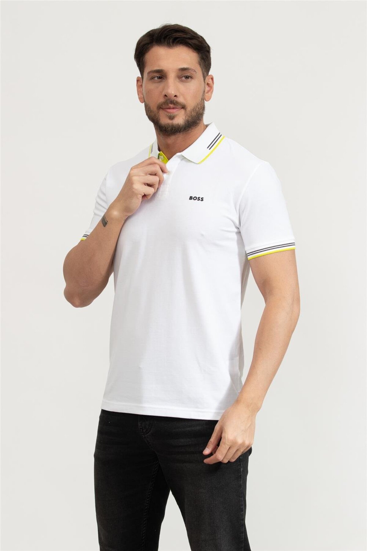خرید اینترنتی تیشرت آستین کوتاه یقه پولو مردانه نخی، دکمهدار، سفید، کد ۵۰۵۰۶۱۹۳-۱۰۷ برند باس BOSS اورجینال از BRANDYS نمایندگی ترکیه
