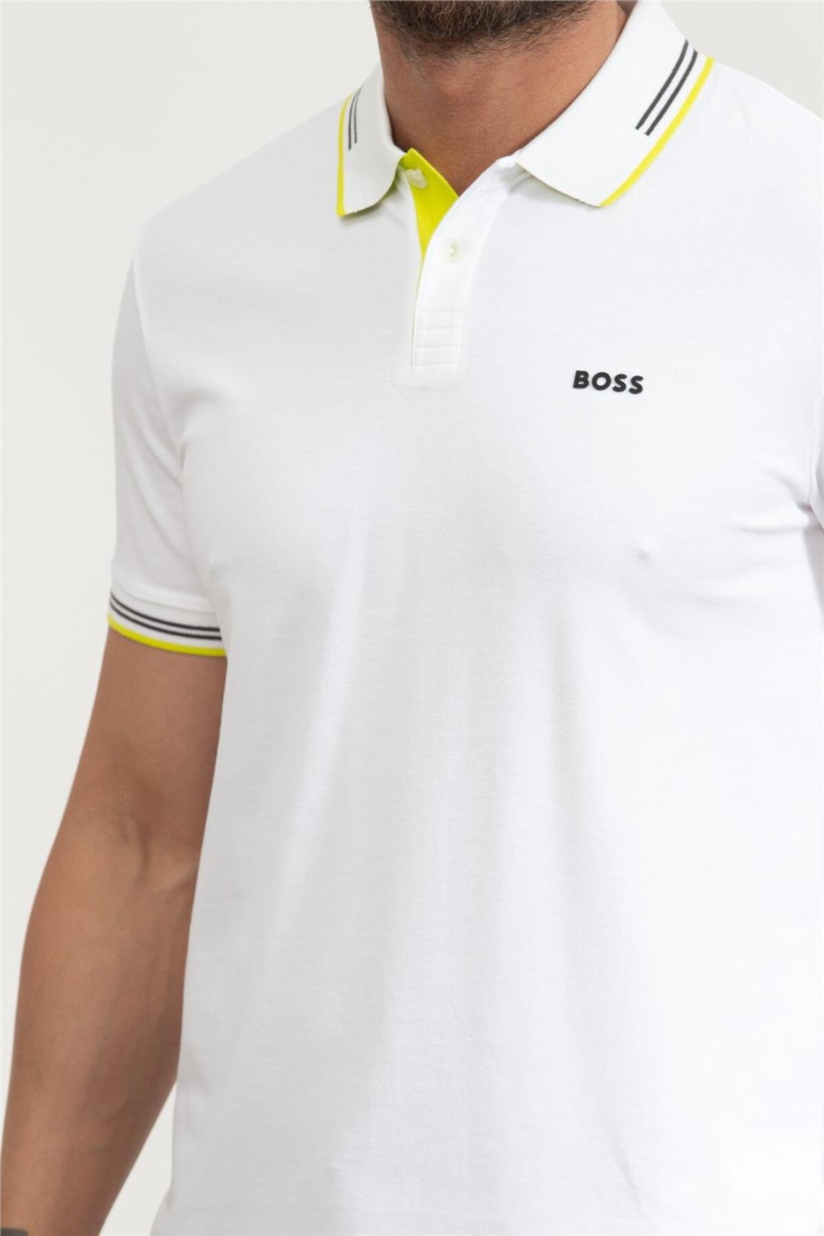 خرید اینترنتی تیشرت آستین کوتاه یقه پولو مردانه نخی، دکمهدار، سفید، کد ۵۰۵۰۶۱۹۳-۱۰۷ برند باس BOSS اورجینال از BRANDYS نمایندگی و فروشگاه معتبر ترکیه