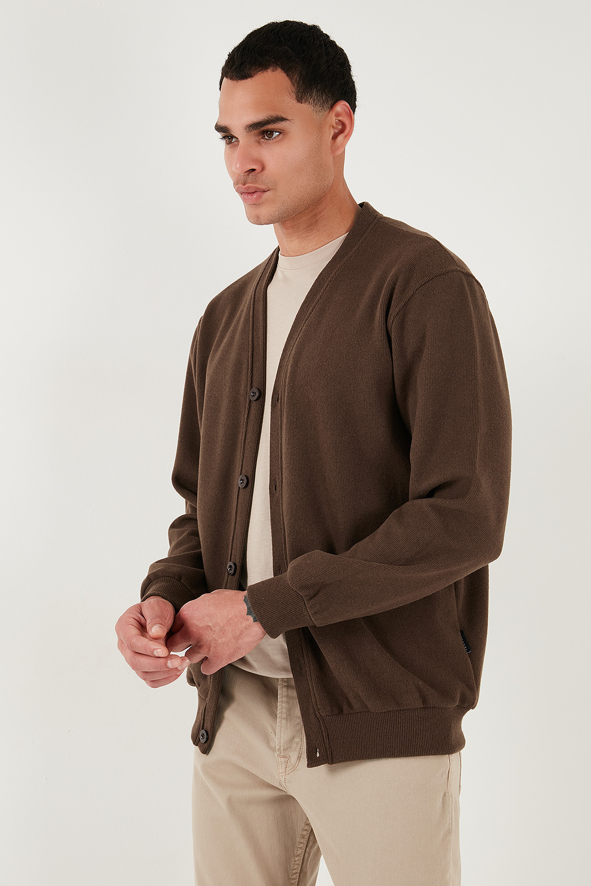 خرید اینترنتی ژاکت کش باف پشمی مردانه یقه V-یقه دکمه دار پنبه ای منظم 456205 برند بوراتی Buratti اورجینال از Markastok نمایندگی ترکیه