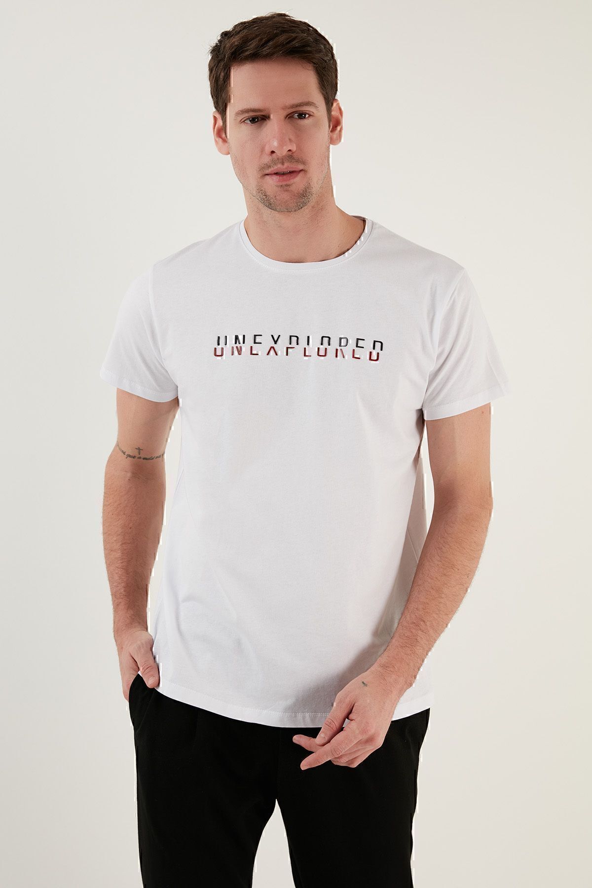 خرید اینترنتی تی شرت مردانه یقه گرد ۱۰۰٪ پنبه مدل Slim Fit کد ۵۴۱UNEXPLORED24 برند بوراتی Buratti اورجینال از Markastok نمایندگی ترکیه