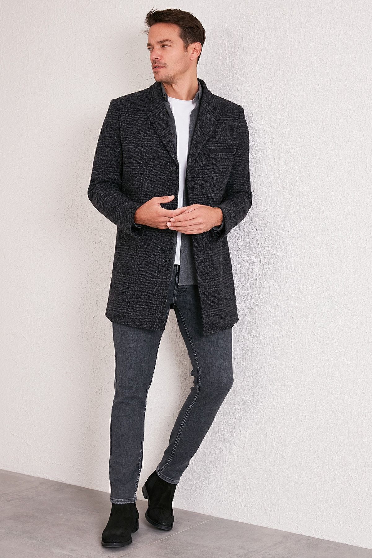 خرید اینترنتی پالتو مردانه کشمیری یقه تک دکمهای اسلیم فیت، تک چاک، کد ۵۸۴۰۰۹۸ برند بوراتی Buratti اورجینال از Markastok نمایندگی ترکیه