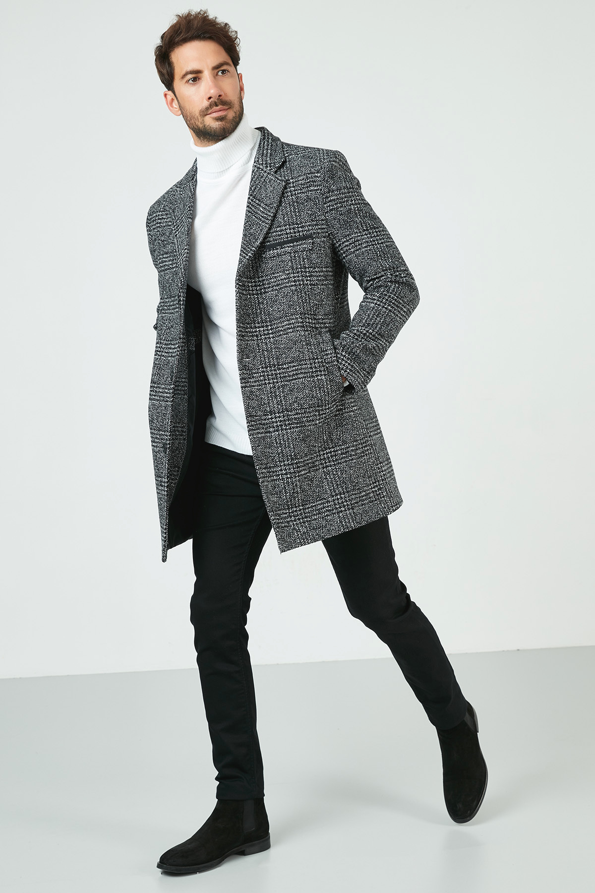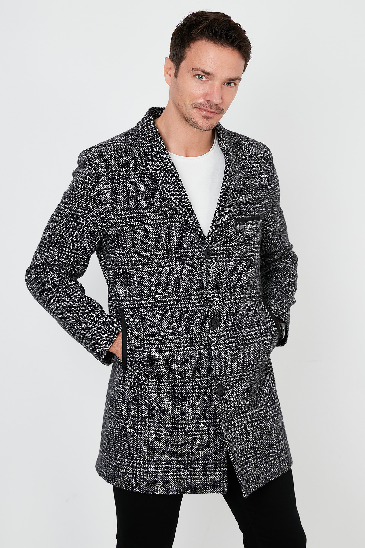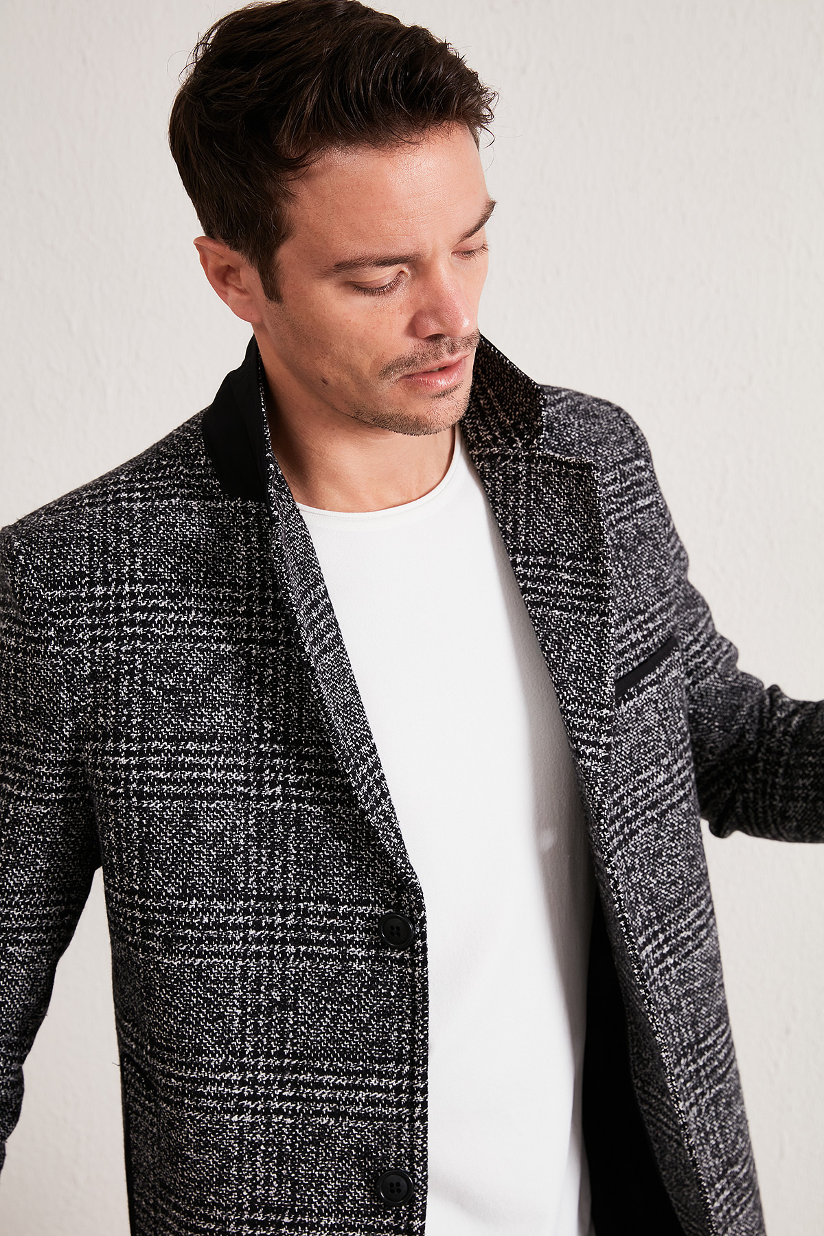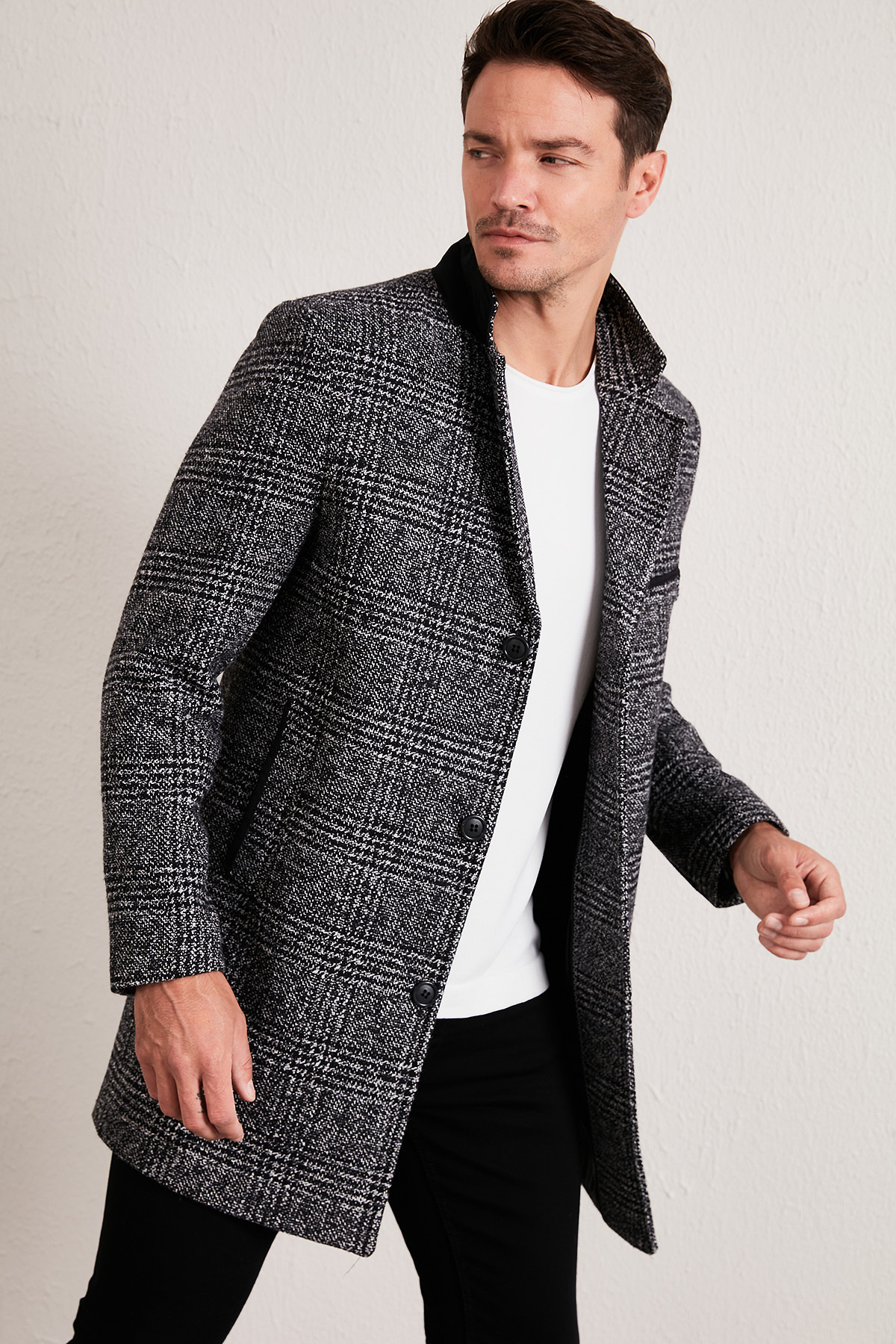 خرید اینترنتی پالتو مردانه کشمیری یقه تک دکمهای اسلیم فیت، تک چاک، کد ۵۸۴۰۰۹۸ برند بوراتی Buratti اورجینال از Markastok نمایندگی ترکیه