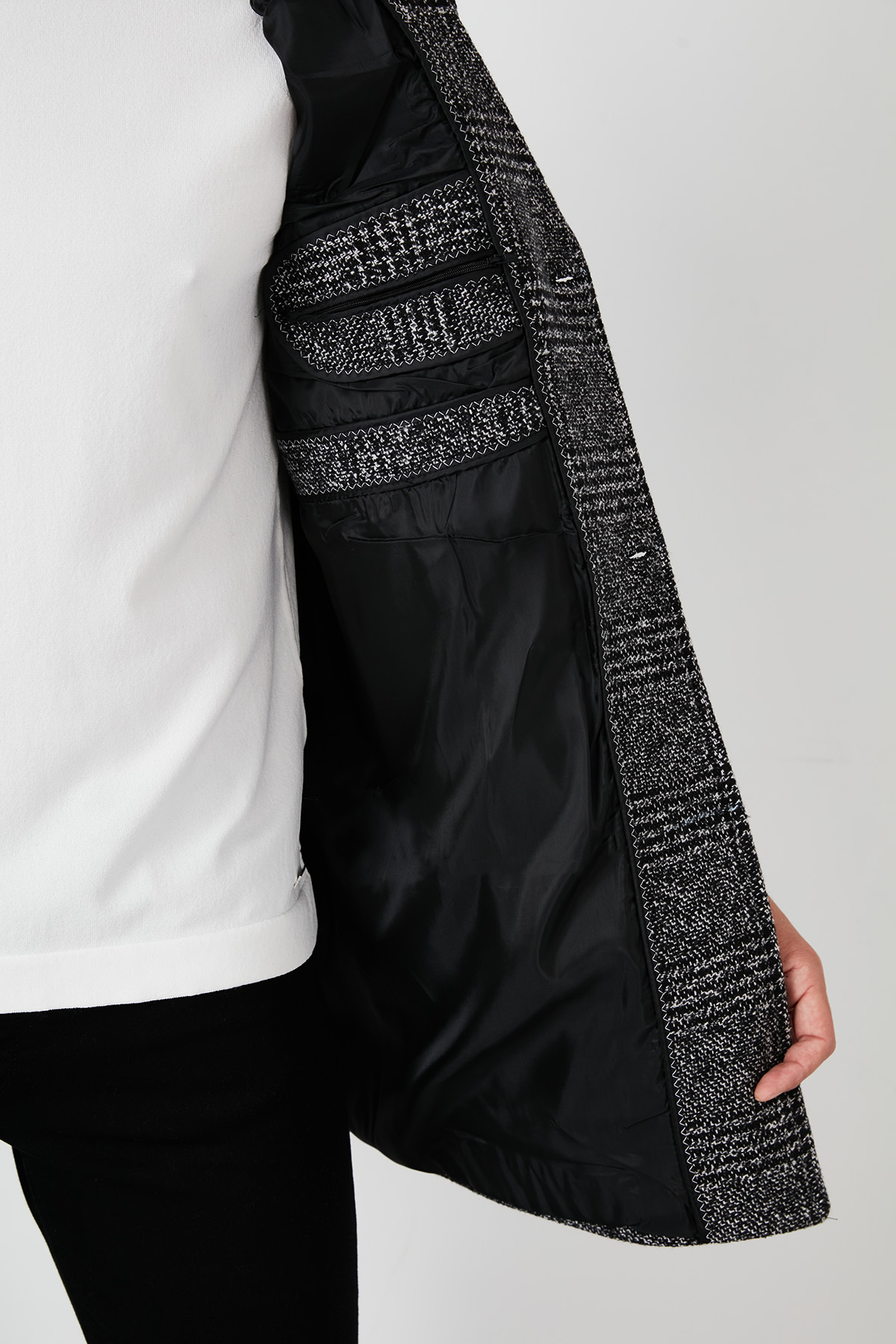 جیب داخلی ابعاد مدل: وزن: ۷۹ کیلوگرم / قد: ۱