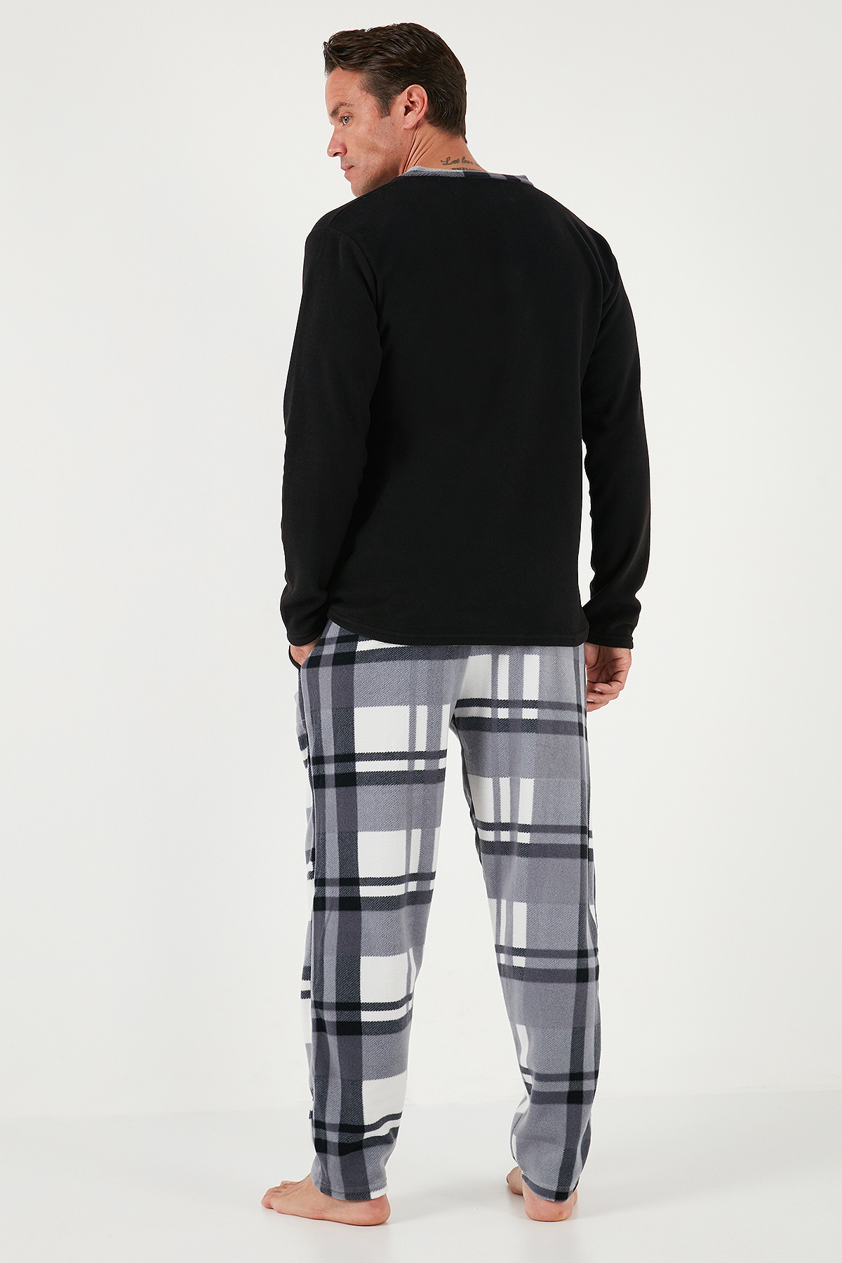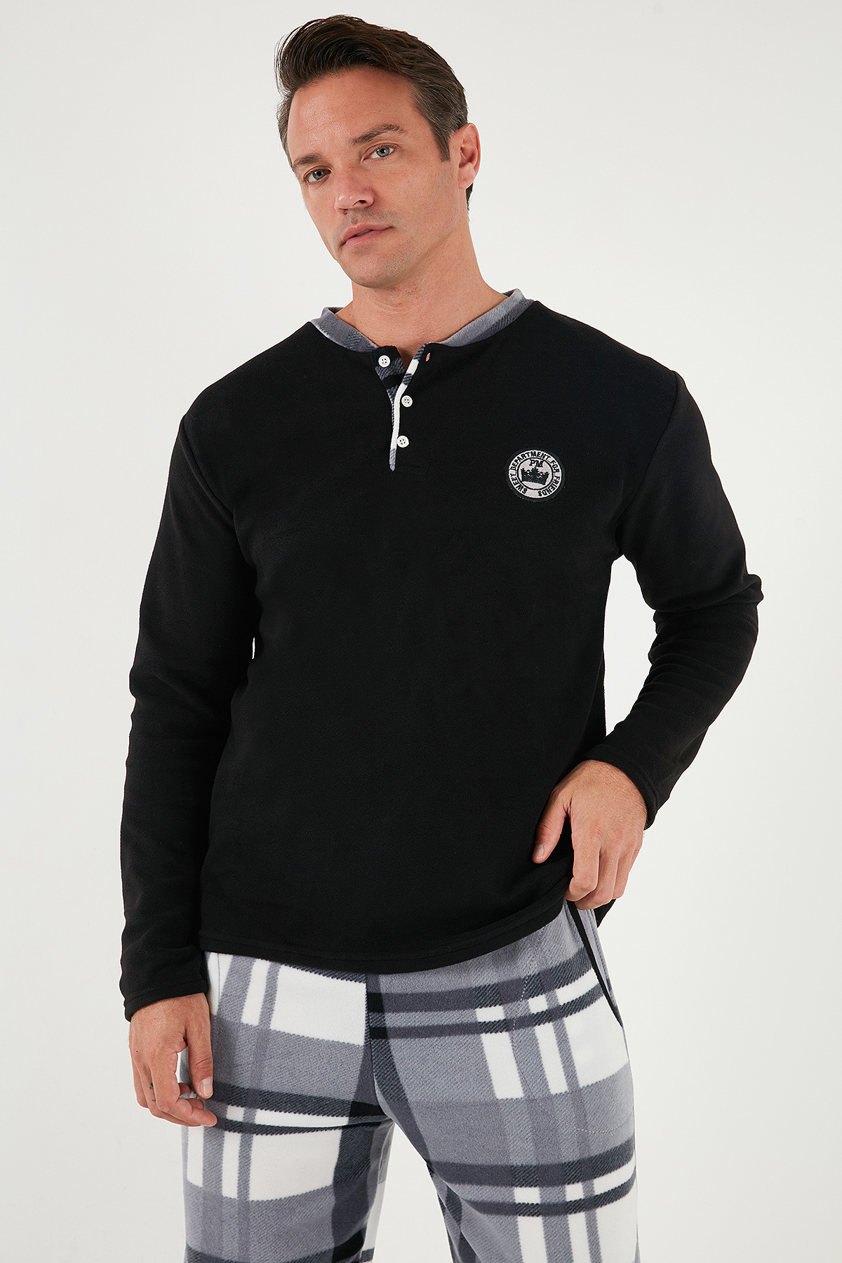 خرید اینترنتی ست لباس خواب مردانه یقه گرد دکمه دار طرح دار زمستانی، مدل پلار، کد ۶۰۹ برند بوراتی Buratti اورجینال از Markastok نمایندگی ترکیه
