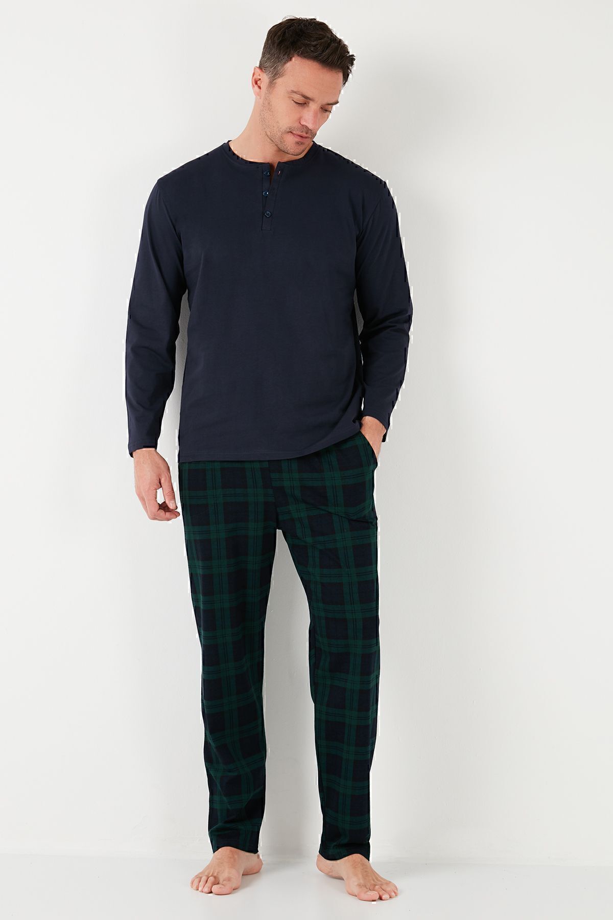 خرید اینترنتی ست لباس خواب مردانه آستین بلند چهارخانه نخی کمر کشی معمولی کد ۶۵۷۲۰ برند بوراتی Buratti اورجینال از Markastok نمایندگی و فروشگاه معتبر ترکیه