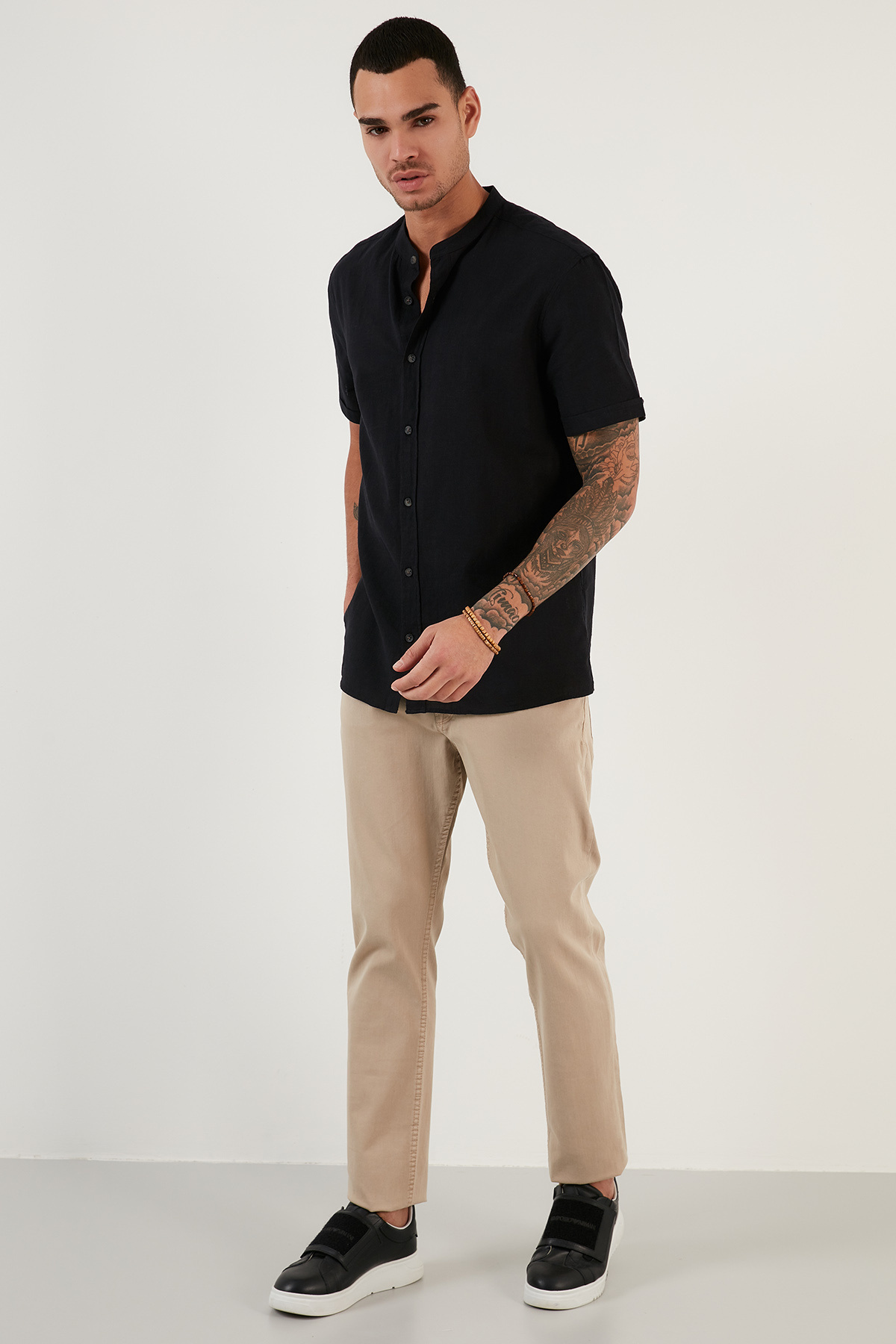 خرید اینترنتی پیراهن مردانه آستین کوتاه یقه ماندارین طرح کتان نخی Cf21s113899 برند بوراتی Buratti اورجینال از Markastok نمایندگی ترکیه