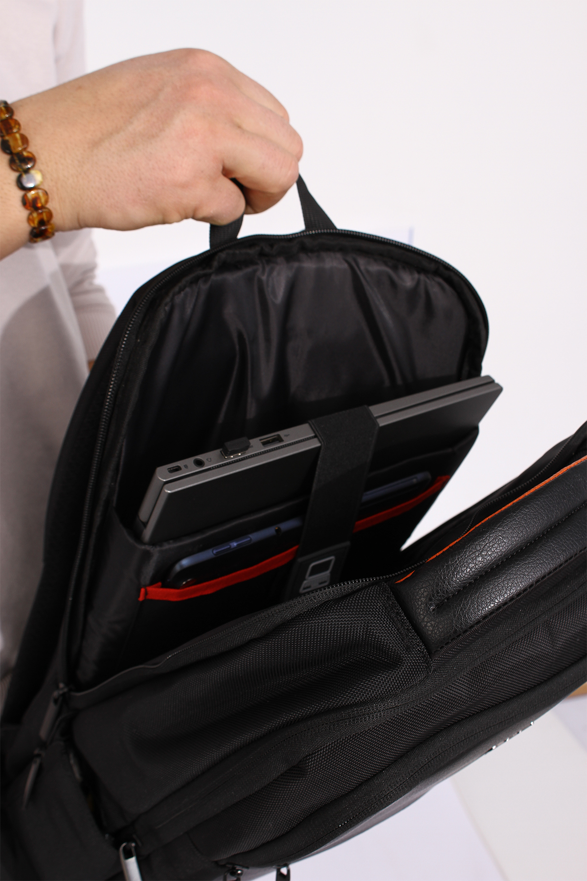 محفظه اصلی پشتی شامل یک محفظه لپتاپ سازگار با لپتاپهای تا ۱۵.۶ اینچ و یک جیب بدون زیپ است.