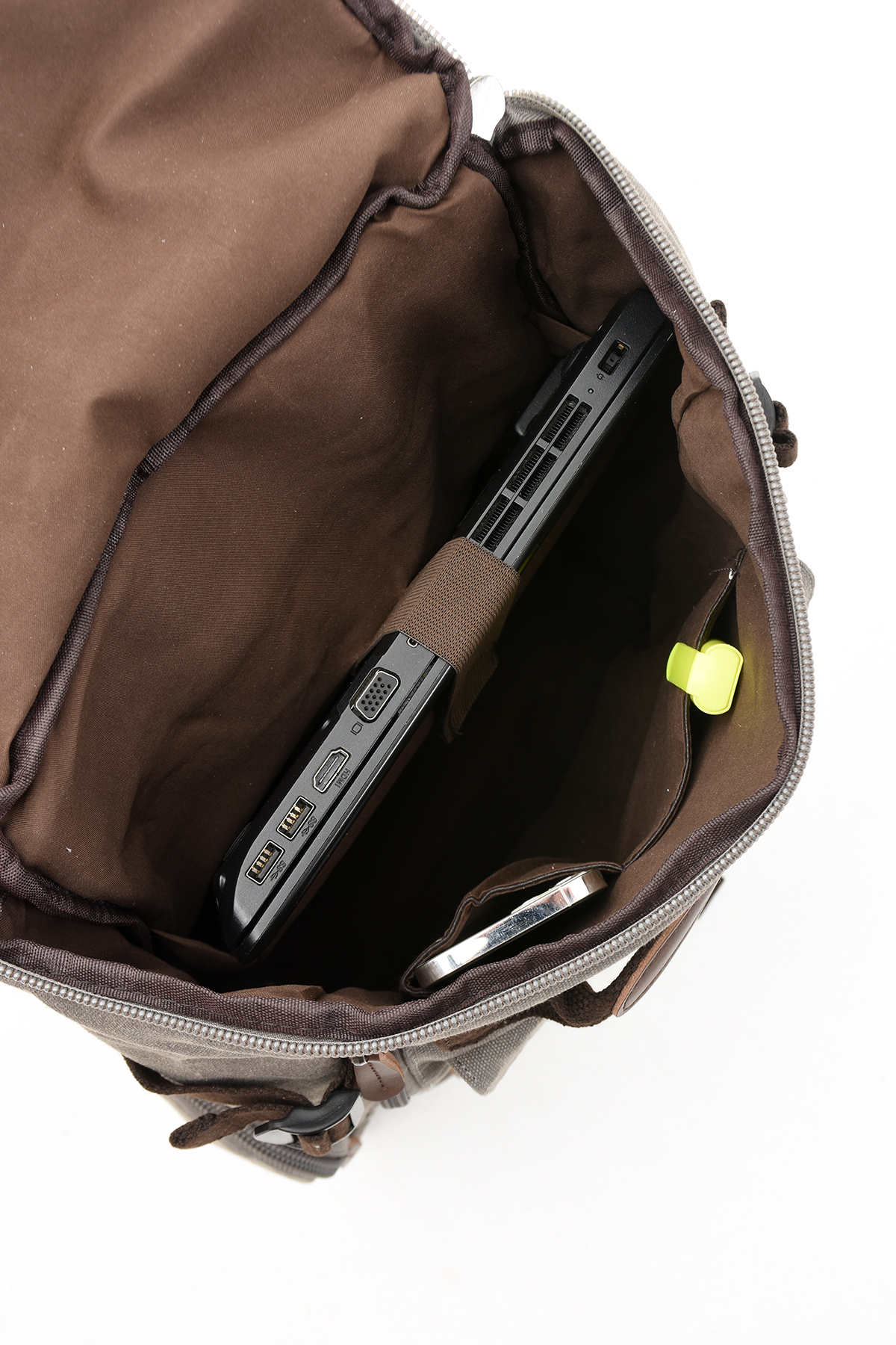 بندهای شانه قابل تنظیم. ویژگیهای داخلی: فضای داخلی آستر دارد. محفظه اصلی شامل یک جیب بدون زیپ و یک محفظه لپتاپ است.