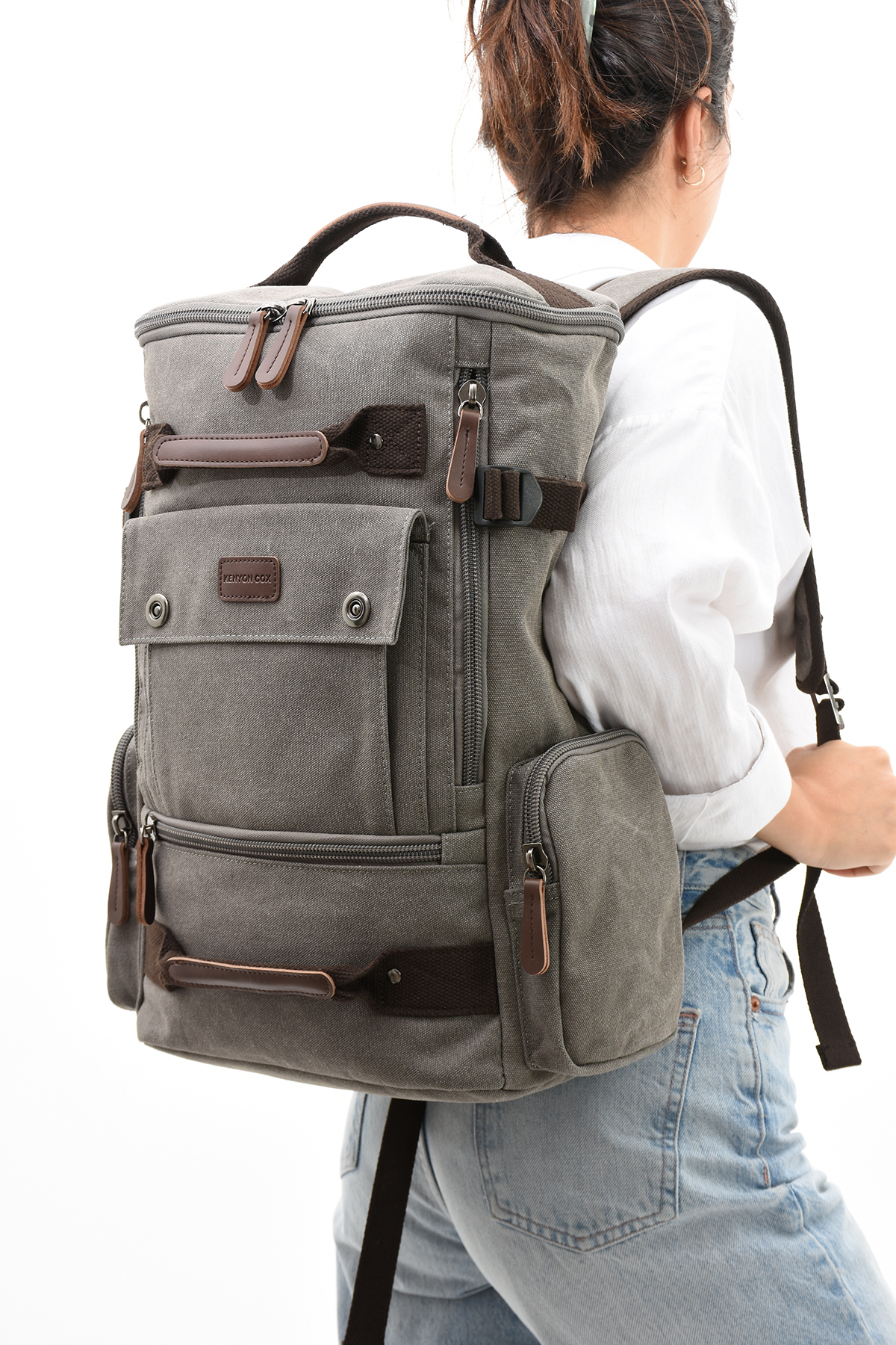کوله پشتی برزنتی eba-8831 با محفظه لپ تاپ، کیف کوهنوردی مسافرتی کمپینگ خاکستری زنانه راسته | By Hakan 24ubyh0025