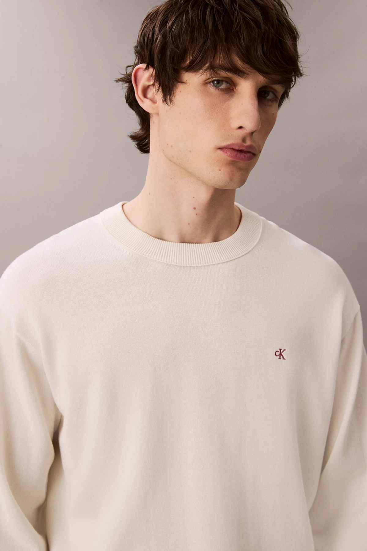 خرید اینترنتی ژاکت مردانه شلوار جین یقه گرد کلاسیک، ساده، سفید مایل به کرم، LV04RC309GYAS LS EZ COTTON برند کلوین کلاین Calvin Klein اورجینال از BOYNER نمایندگی ترکیه