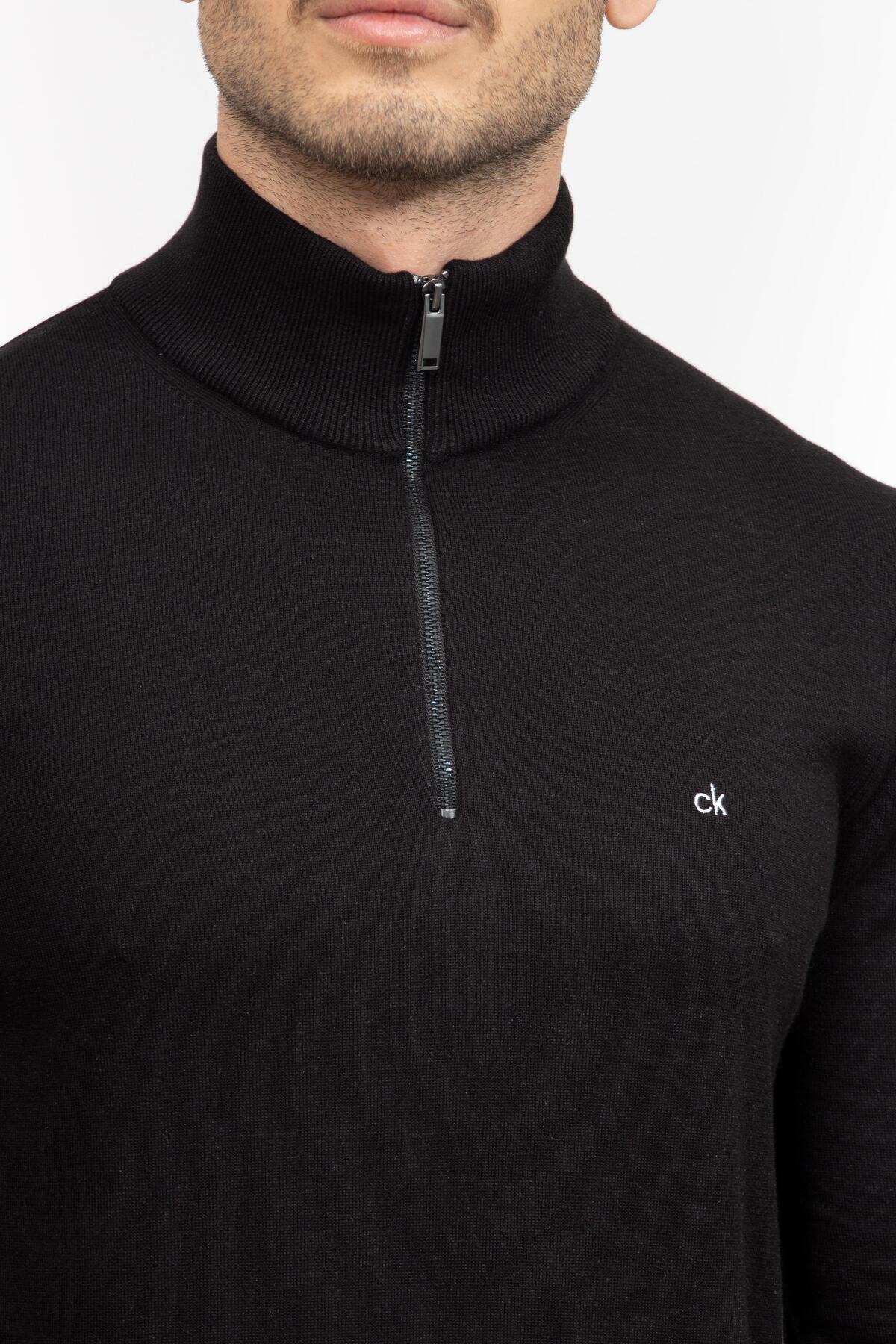 خرید اینترنتی پلیور مردانه نیم زیپ، یقه ایستاده، آستین بلند، مشکی، سایز معمولی، مدل K10K113748-BEH برند کلوین کلاین Calvin Klein اورجینال از BRANDYS نمایندگی و فروشگاه معتبر ترکیه