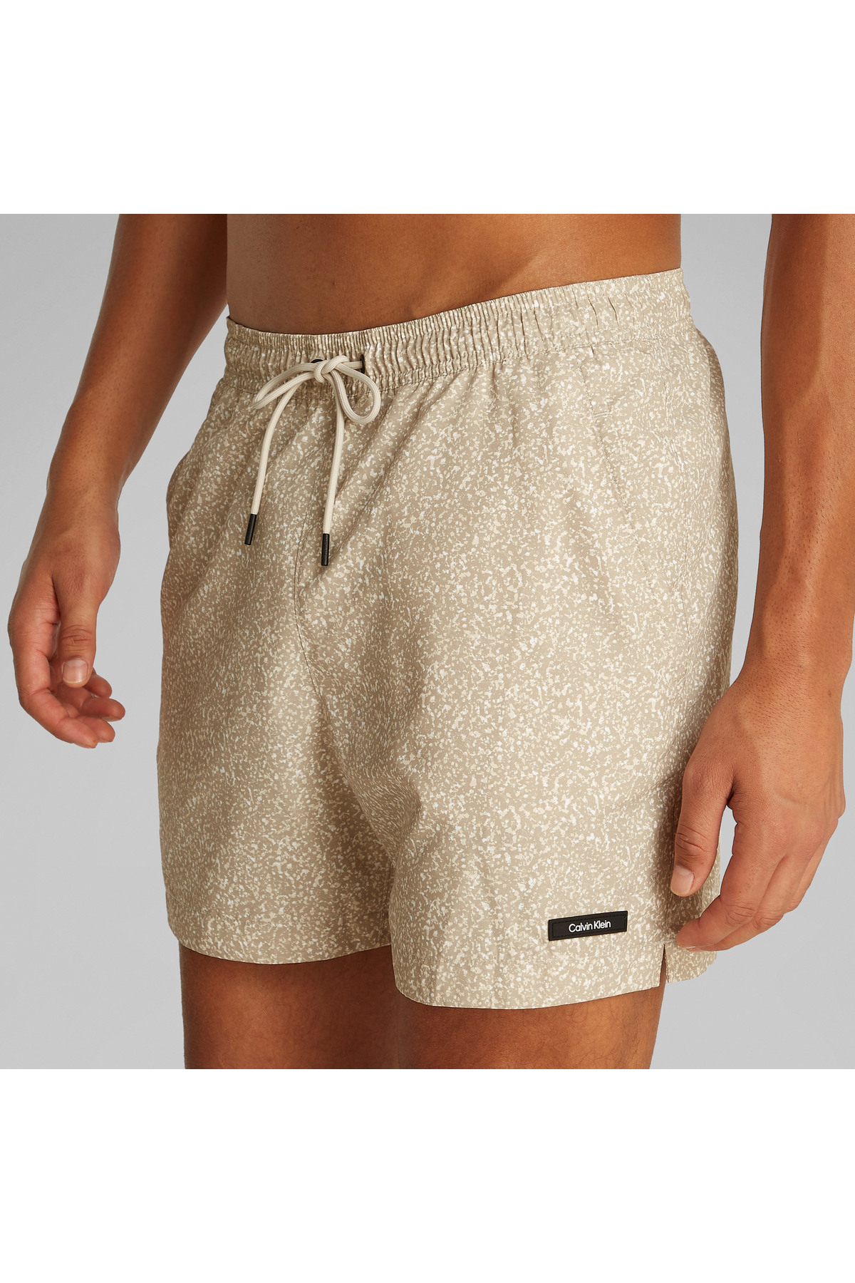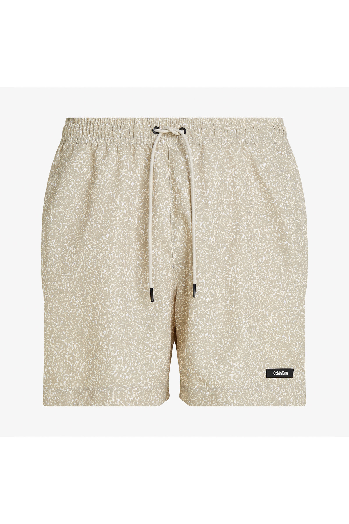 لباس شنا مردانه بژ با چاپ بنددار متوسط مردانه کلوین کلاین فاق نرمال راسته | Calvin Klein KM0KM01120.0F4