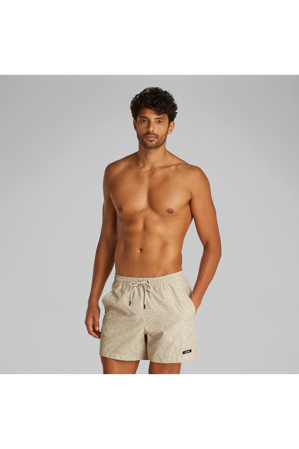 خرید اینترنتی لباس شنا مردانه بژ با چاپ بنددار متوسط برند کلوین کلاین Calvin Klein اورجینال از Fast Spor نمایندگی ترکیه