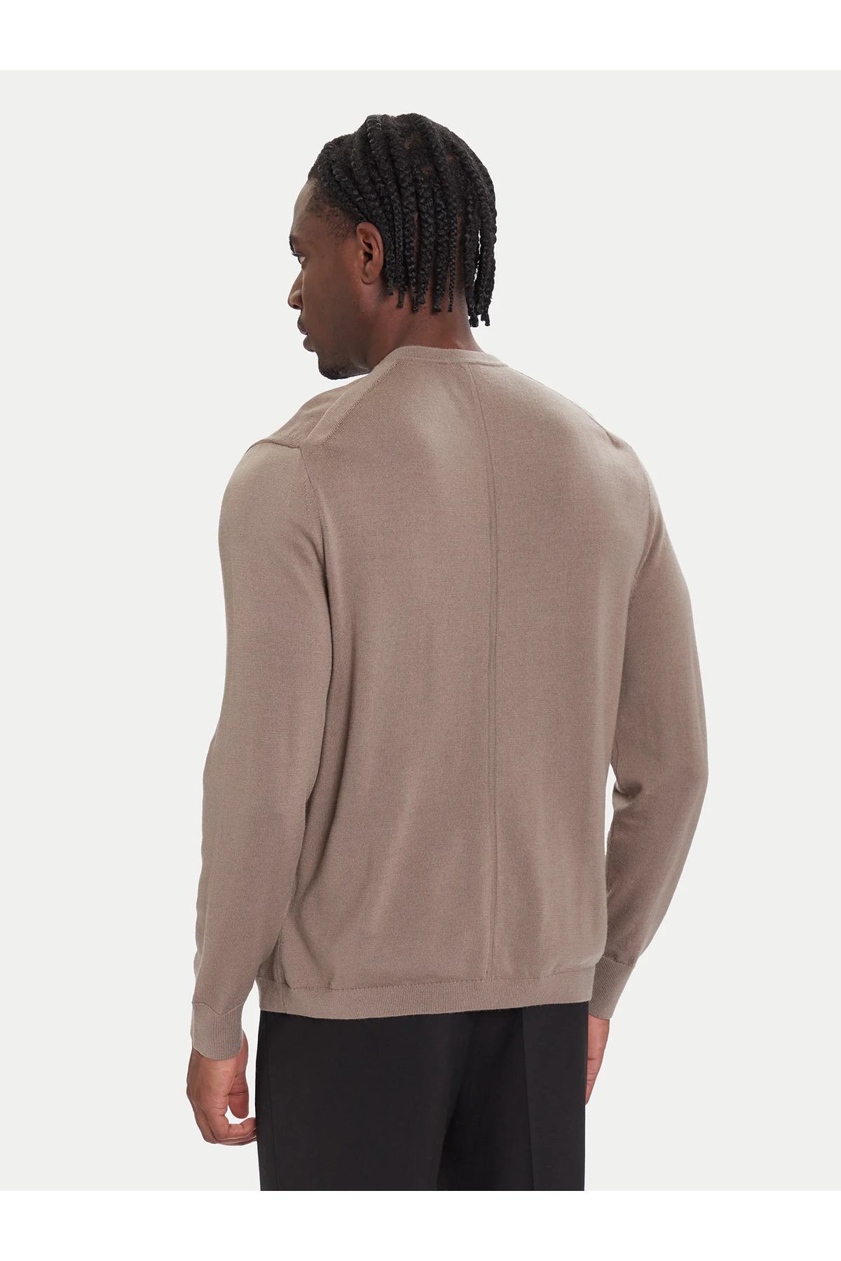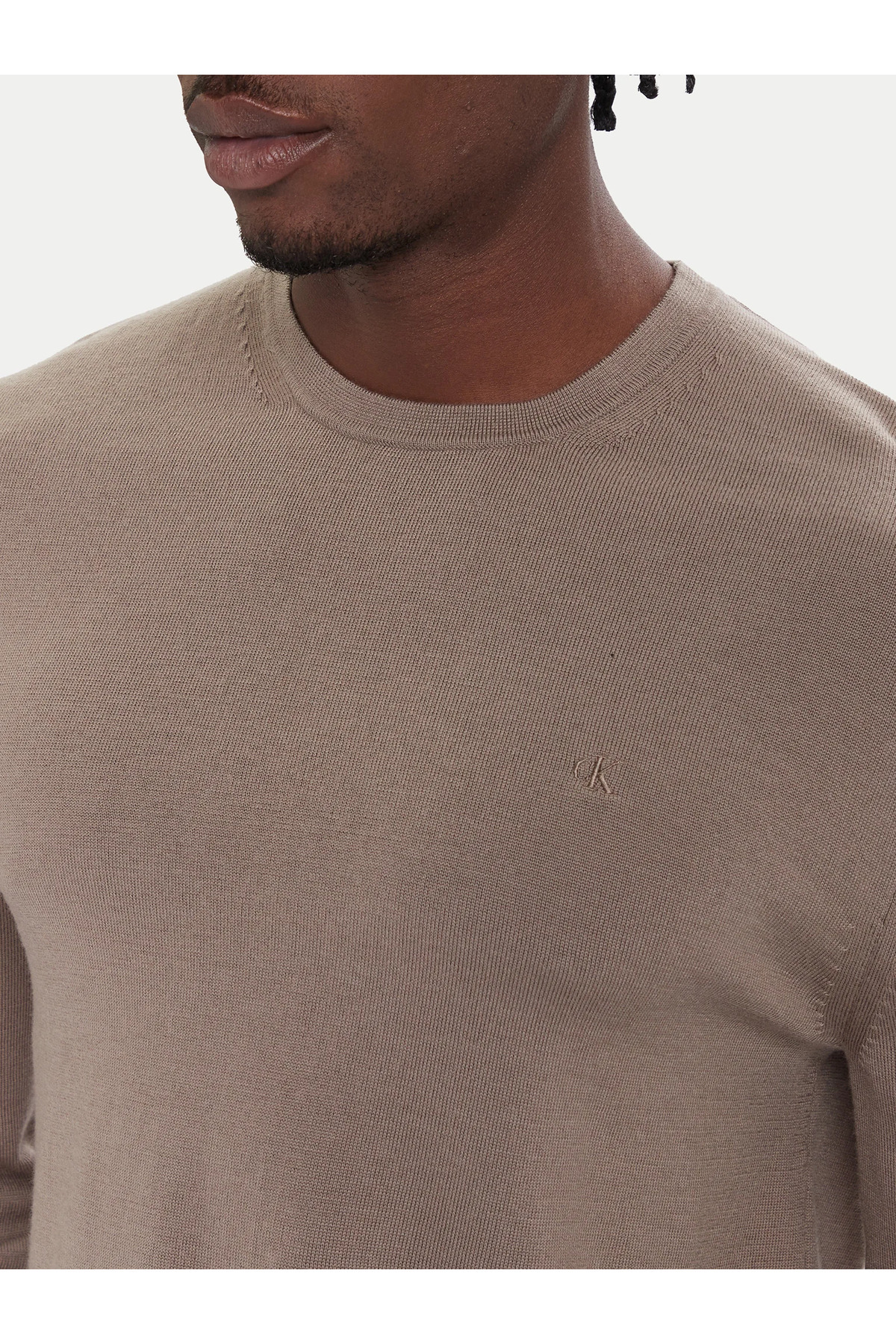 خرید اینترنتی ژاکت بافتنی یقه گرد مردانه ۱۰۰٪ پشمی معمولی، آستین بلند، طرح برجسته CK، یقه غازی قهوهای برند کلوین کلاین Calvin Klein اورجینال از Wejaar نمایندگی ترکیه
