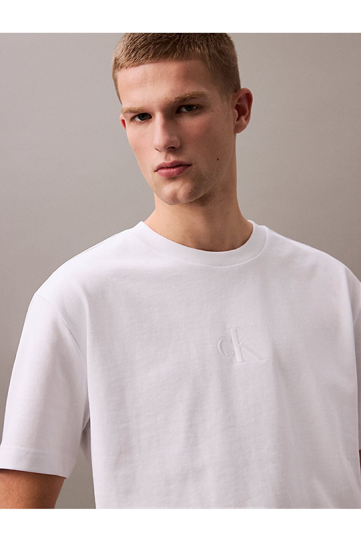 خرید اینترنتی تی شرت سفید آستین کوتاه یقه گرد مردانه با طرح لوگو در پشت LV04RAB812-YAA برند کالوین کلین Calvin Klein اورجینال از Wejaar نمایندگی ترکیه