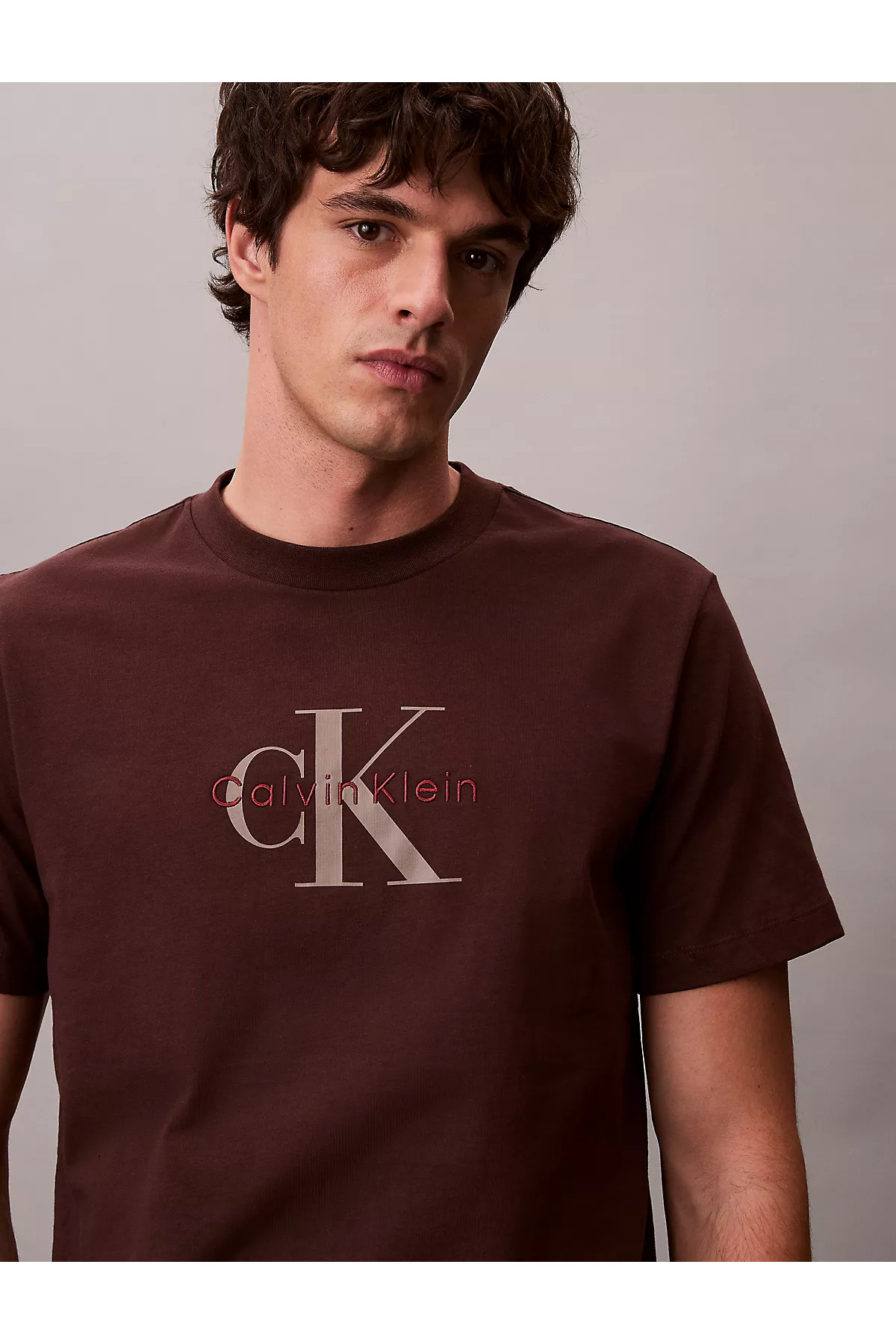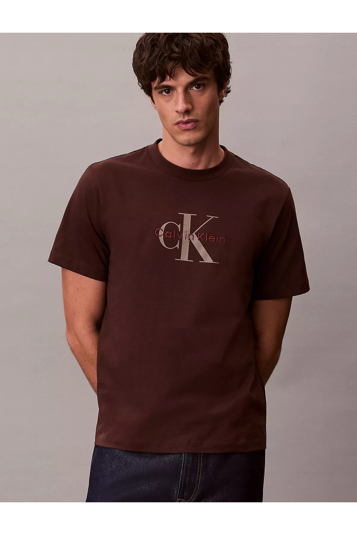 خرید اینترنتی تیشرت مردانه یقه گرد طرح معمولی CK با چاپ لوگو، نخی، آستین کوتاه قهوهای، LV04RB862G- برند کلوین کلاین Calvin Klein اورجینال از Wejaar نمایندگی ترکیه