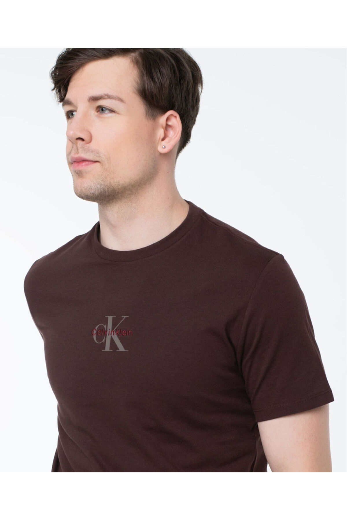 خرید اینترنتی تیشرت مردانه CK مدل Text Detail آستین کوتاه، یقه گرد، قهوهای، LV04RB866G-2IN برند کلوین کلاین Calvin Klein اورجینال از Wejaar نمایندگی ترکیه