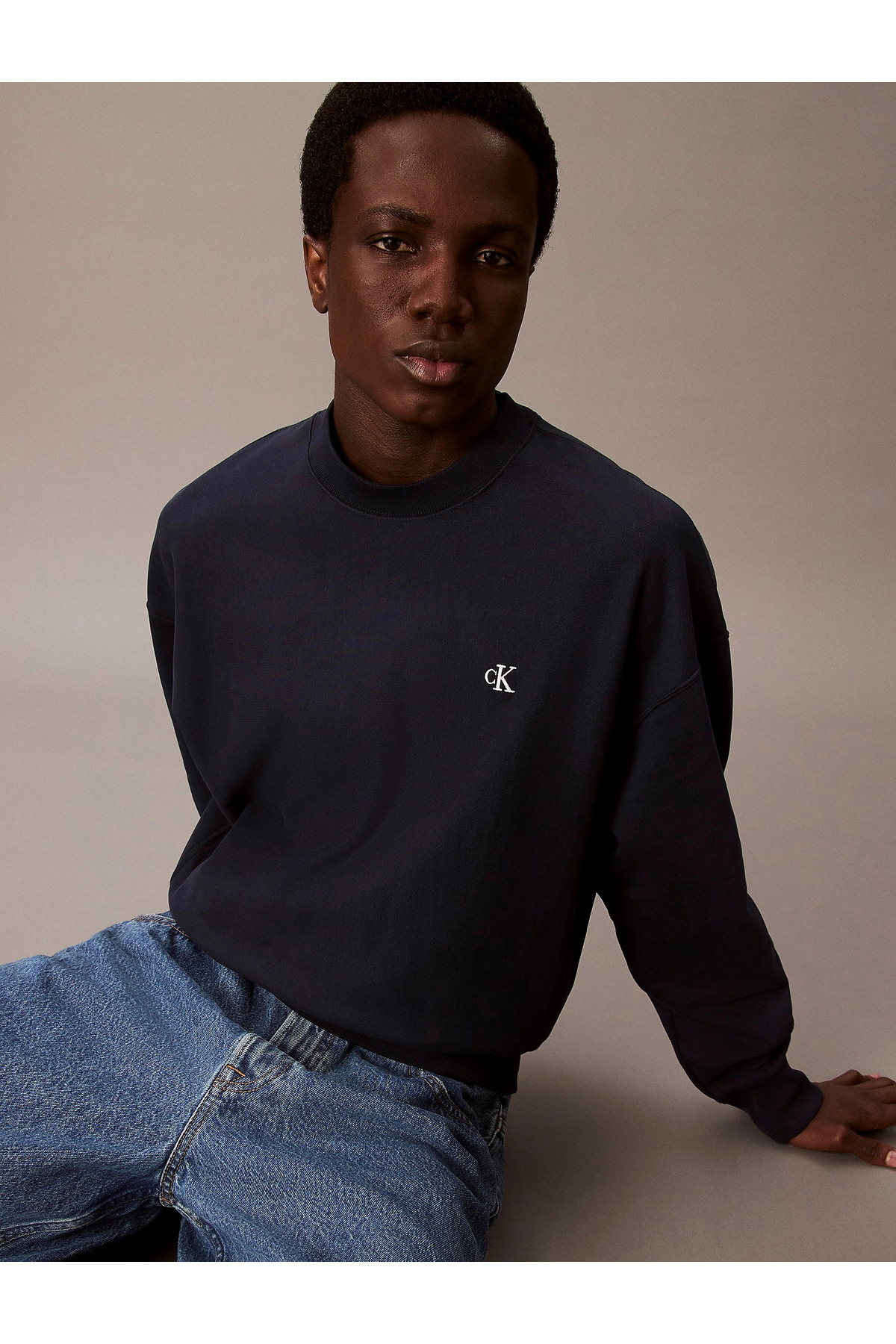 خرید اینترنتی سویشرت یقه گرد مردانه سایز معمولی با لوگوی گلدوزی شده – سرمهای برند کلوین کلاین Calvin Klein اورجینال از LVS BRANDS نمایندگی و فروشگاه معتبر ترکیه