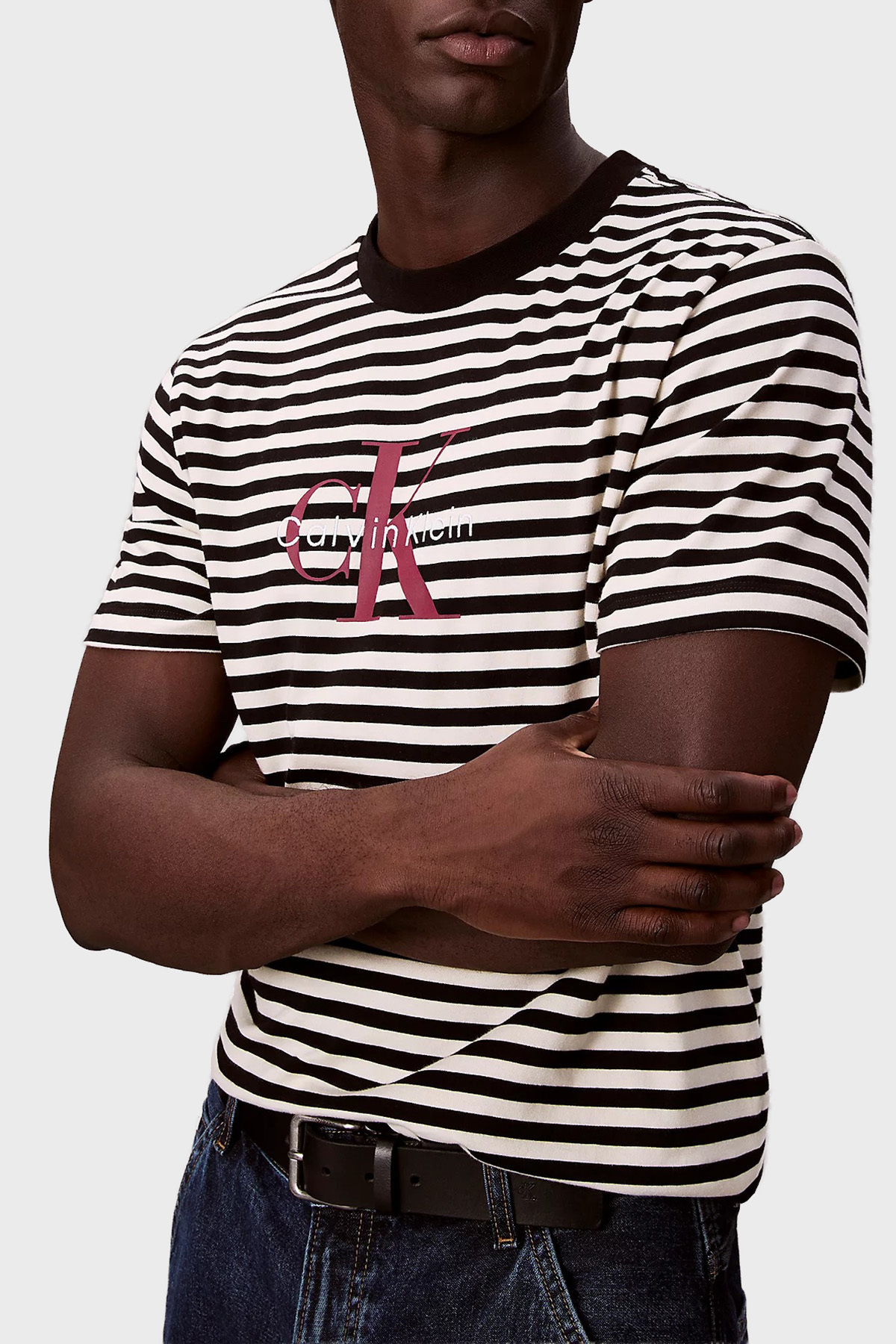 خرید اینترنتی تی شرت مردانه طرح راه راه یقه گرد LV04RD204GUB1 برند کلوین کلاین Calvin Klein اورجینال از ExxeSelection نمایندگی ترکیه