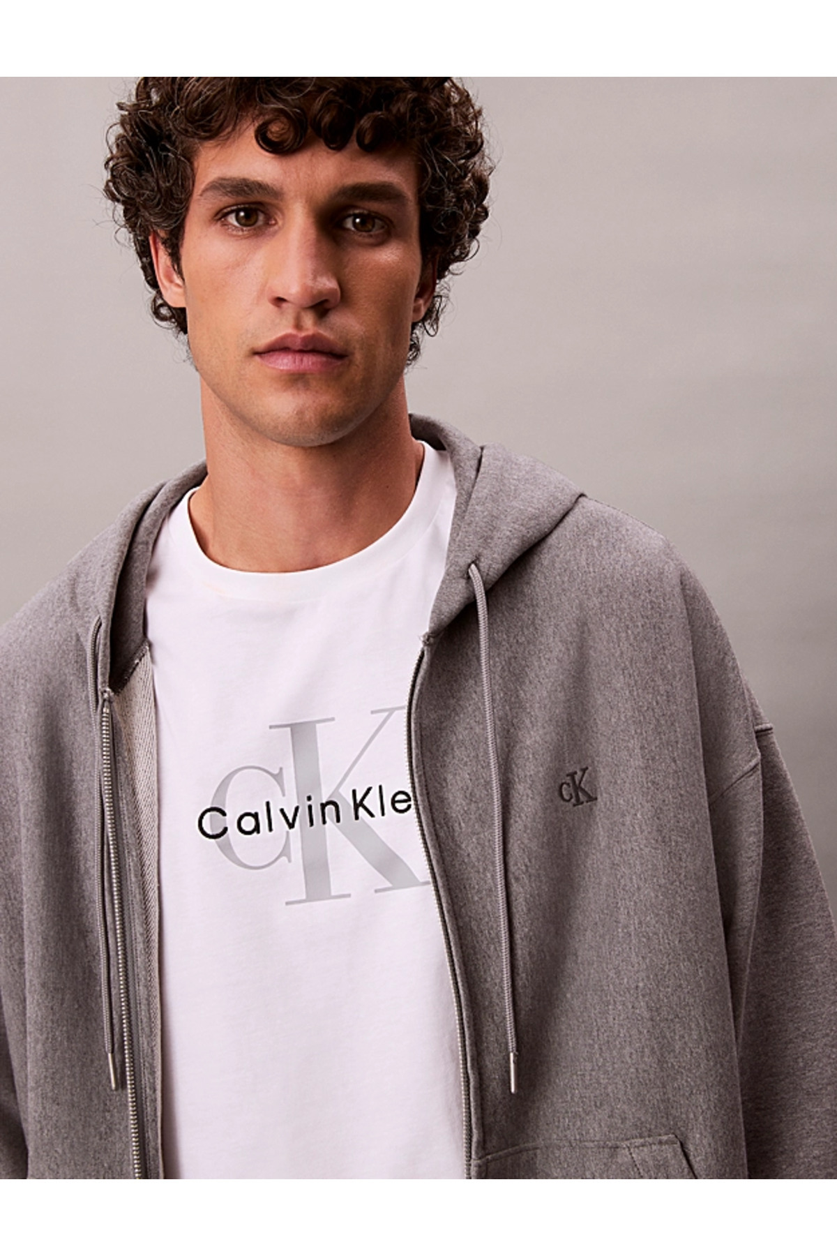 خرید اینترنتی سویشرت مردانه کلاه دار با لوگوی برند و زیپ کامل، خاکستری LV04 برند کلوین کلاین Calvin Klein اورجینال از MarkaPlus نمایندگی و فروشگاه معتبر ترکیه