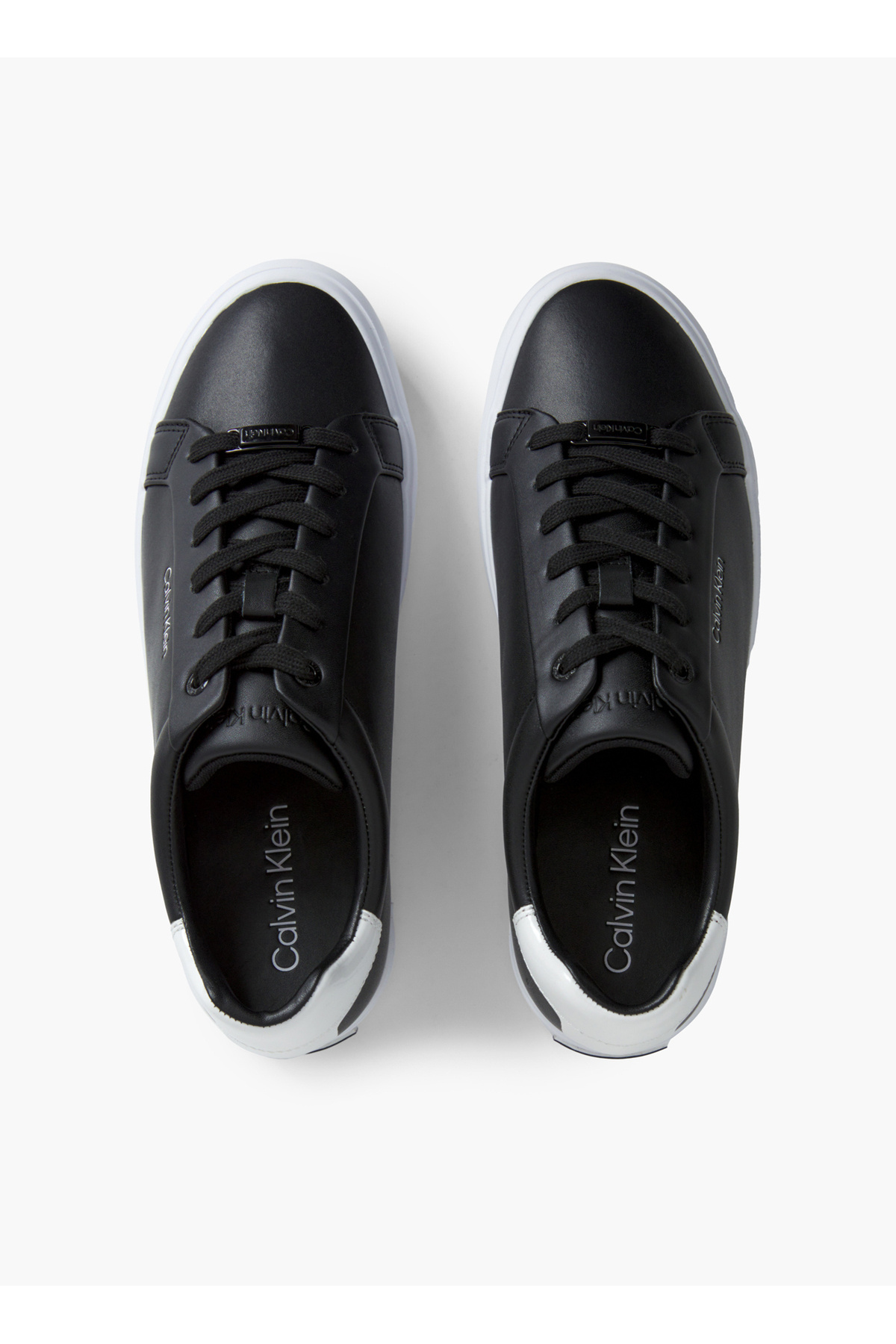 کفشهای کتانی کلوین کلاین با رنگ مشکی، ظاهری ساده و شیک ارائه میدهند.