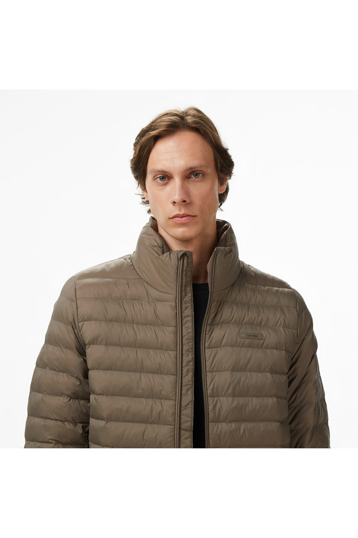 خرید اینترنتی کاپشن پفی مردانه از جنس نایلون به رنگ سبز تیره برند کلوین کلاین Calvin Klein اورجینال از Eren Perakende نمایندگی ترکیه