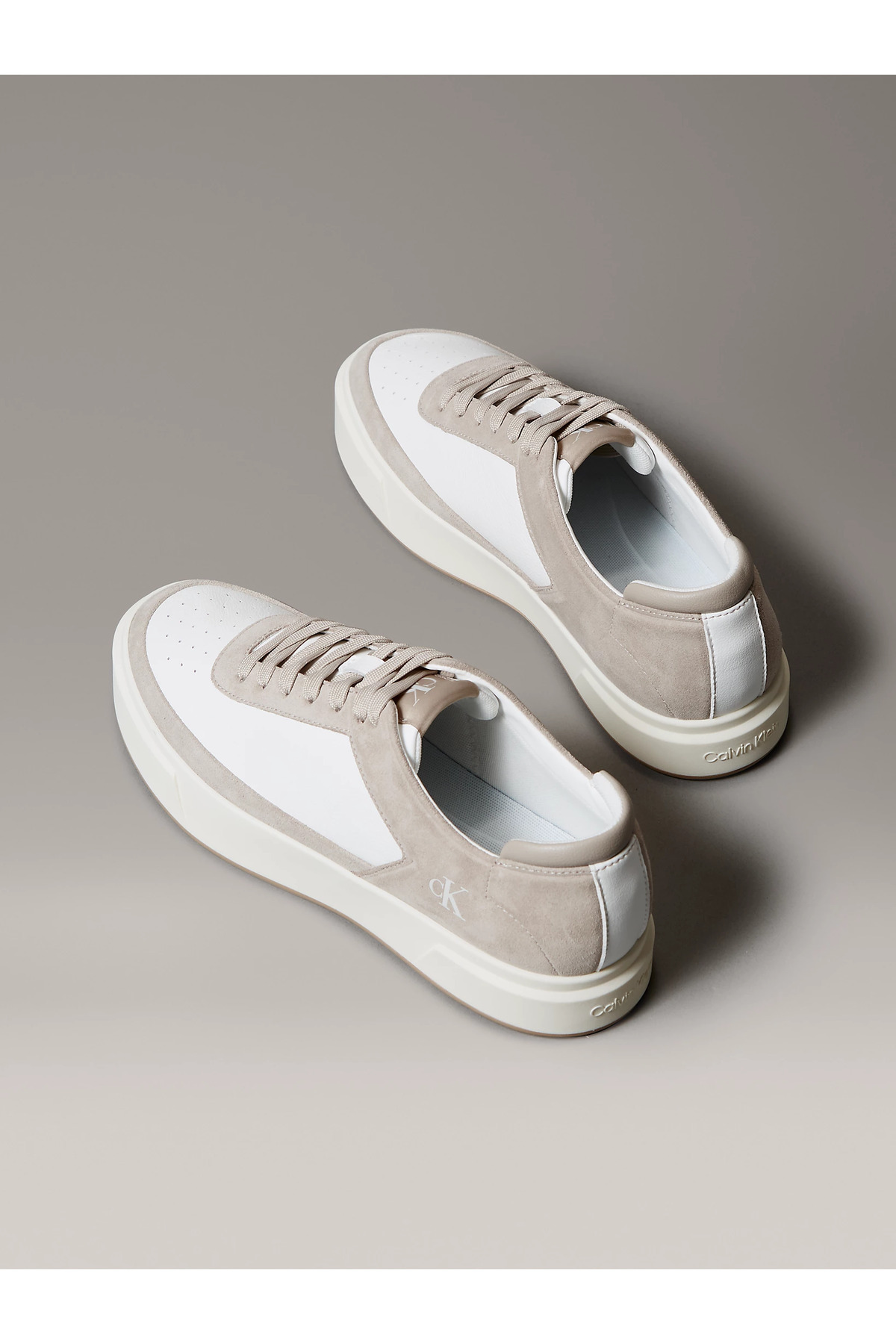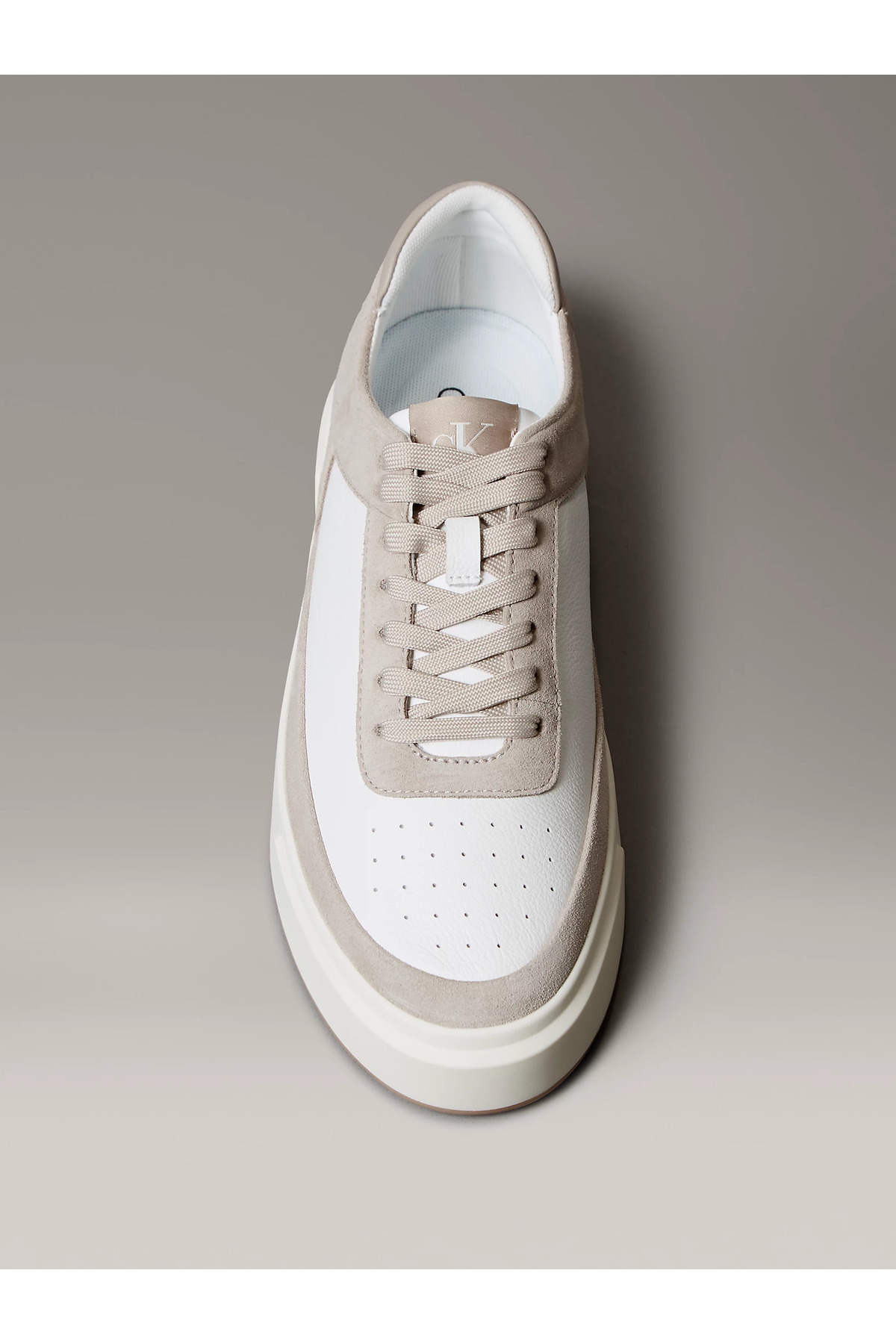 خرید اینترنتی کفش کتانی مردانه چرم طبیعی سفید-قهوهای با رویه تنفسپذیر و برش کوتاه YM0YM01354 برند کلوین کلاین Calvin Klein اورجینال از Wejaar نمایندگی و فروشگاه معتبر ترکیه