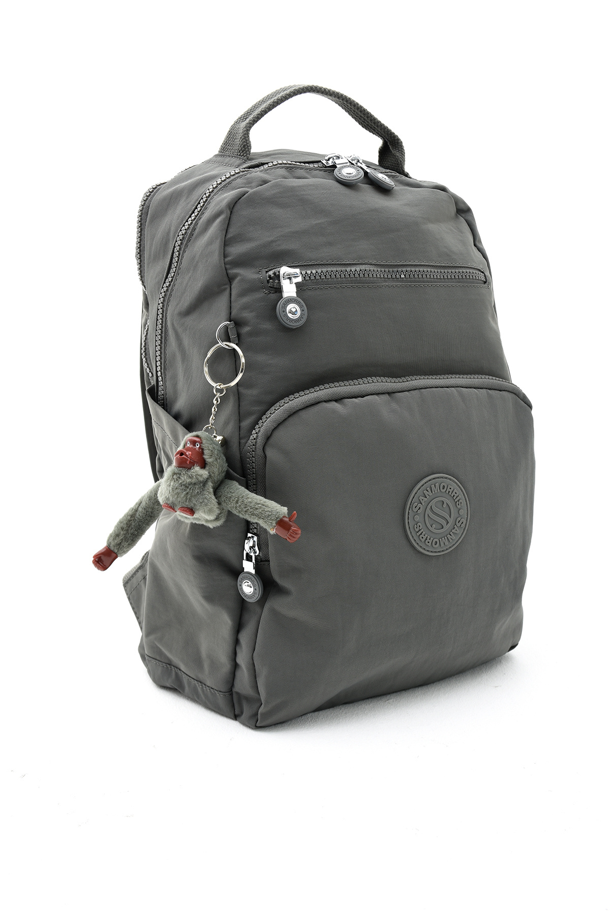 کوله پشتی لپ تاپ و کوله پشتی مدرسه ای و سایز متوسط چند قسمتی Sanmorris Unisex خاکستری ضد آب پارچه چروک زنانه راسته | Çanta Trend SANMORRİS-3011