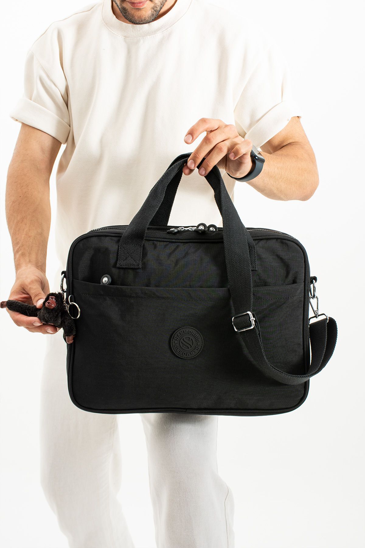 کیف لپتاپ ضد آب از جنس پارچه چیندار یونیسکس با بندهای قابل تنظیم برای عرض و طول دست، در رنگهای مختلف موجود است.