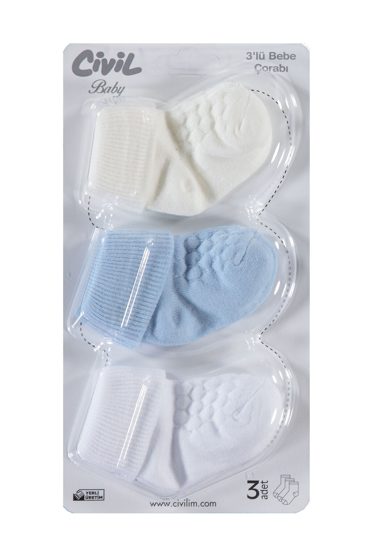 خرید اینترنتی ست جوراب نوزادی پسرانه سه تکه، سایز 0-6 ماه، رنگ آبی برند سیویل بیبی Civil Baby اورجینال از Civil نمایندگی و فروشگاه معتبر ترکیه