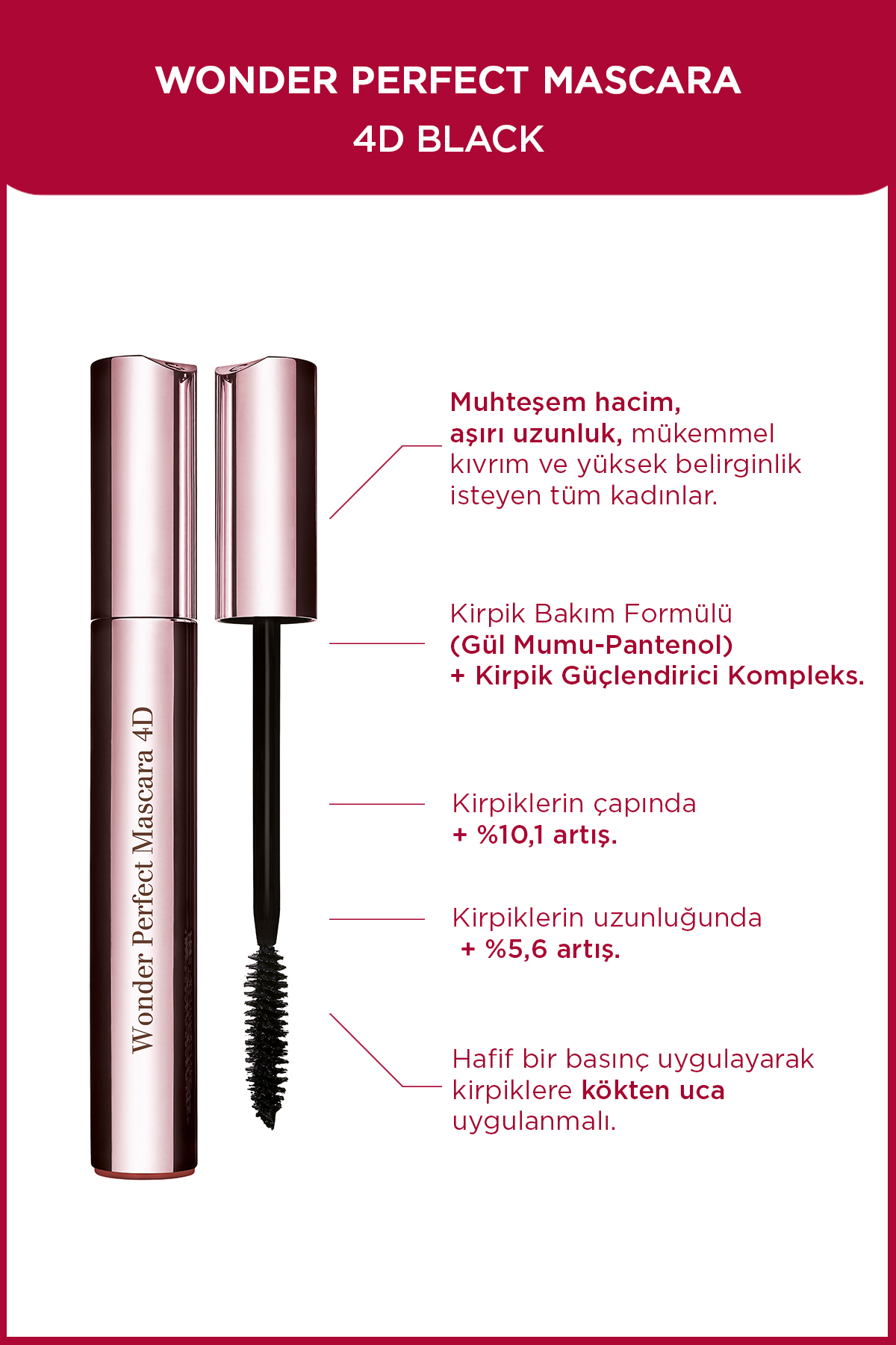 خرید اینترنتی ریمل واندر پرفکت ۴D – فر، حالت دهنده، بلند کننده و حجم دهنده مشکی – 01 مشکی پرفکت برند کلارینس Clarins اورجینال از VENÜS PARFÜMERİ نمایندگی ترکیه