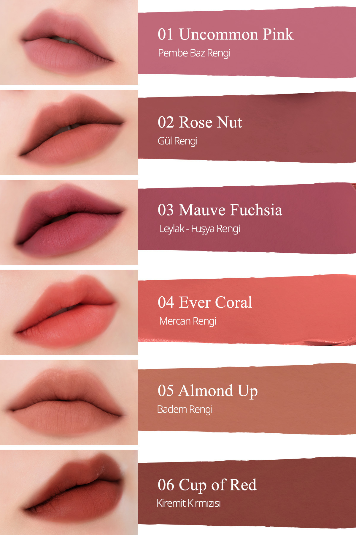 رژ لب مات ملایم با بافت نرم – رژ لب شیفون مود، جلوهای نرم، مات و محو مانند با رنگهای الهام گرفته از حالت لب ایجاد میکند.