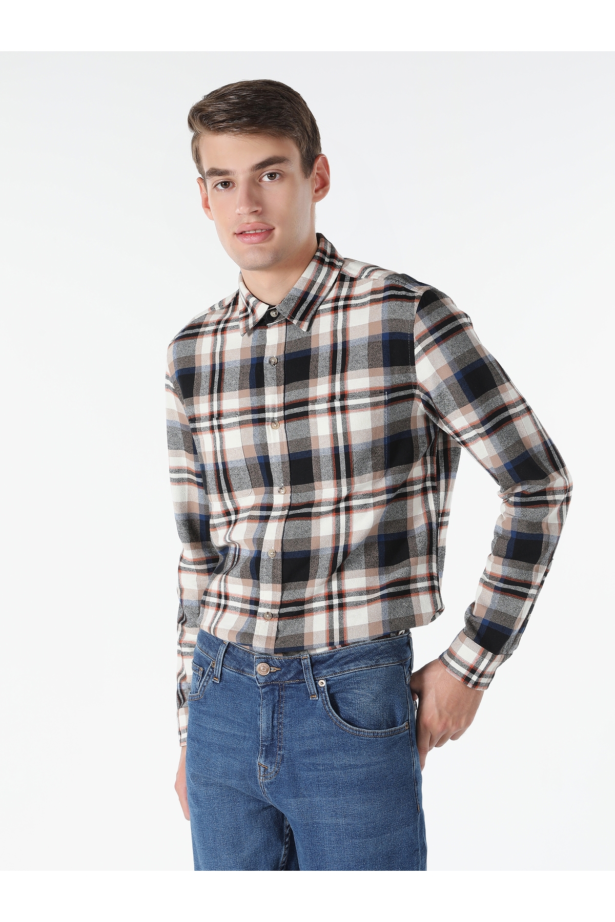 خرید اینترنتی پیراهن مردانه آستین بلند اسلیم فیت طرح شطرنجی بژ CL1061370 برند کالینز Colin’s اورجینال از Colin’s نمایندگی و فروشگاه معتبر ترکیه