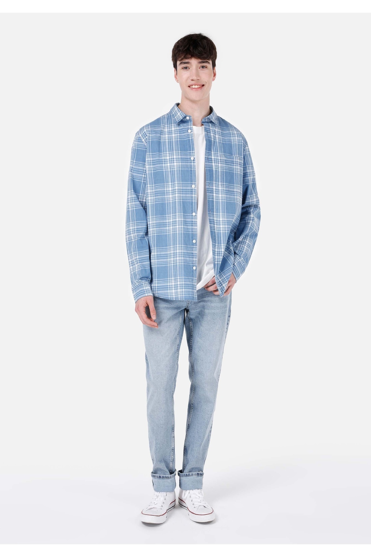 خرید اینترنتی پیراهن مردانه آستین بلند آبی، یقه چهارخانه، سایز معمولی برند کالینز Colin’s اورجینال از Colin’s نمایندگی ترکیه