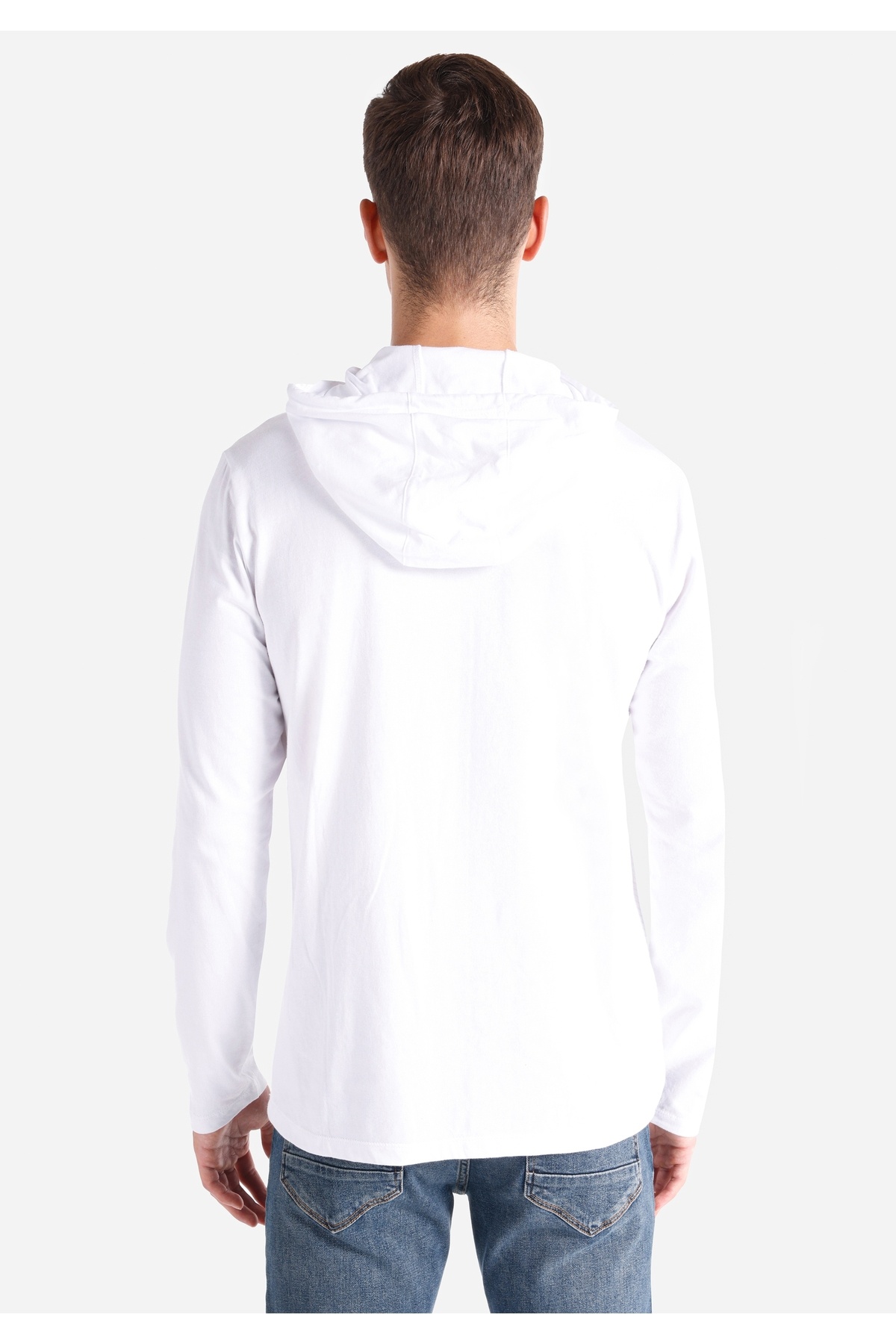 خرید اینترنتی تی‌شرت آستین بلند مردانه سفید کلاه‌دار معمولی سایز فیت برند کالینز Colin’s اورجینال از Colin’s نمایندگی ترکیه