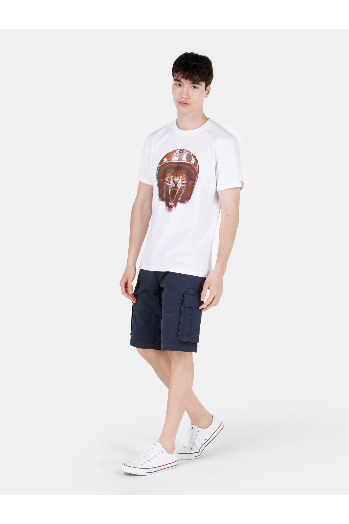خرید اینترنتی تی‌شرت آستین کوتاه مردانه سفید طرح‌دار یقه گرد معمولی برند کالینز Colin’s اورجینال از Colin’s نمایندگی و فروشگاه معتبر ترکیه