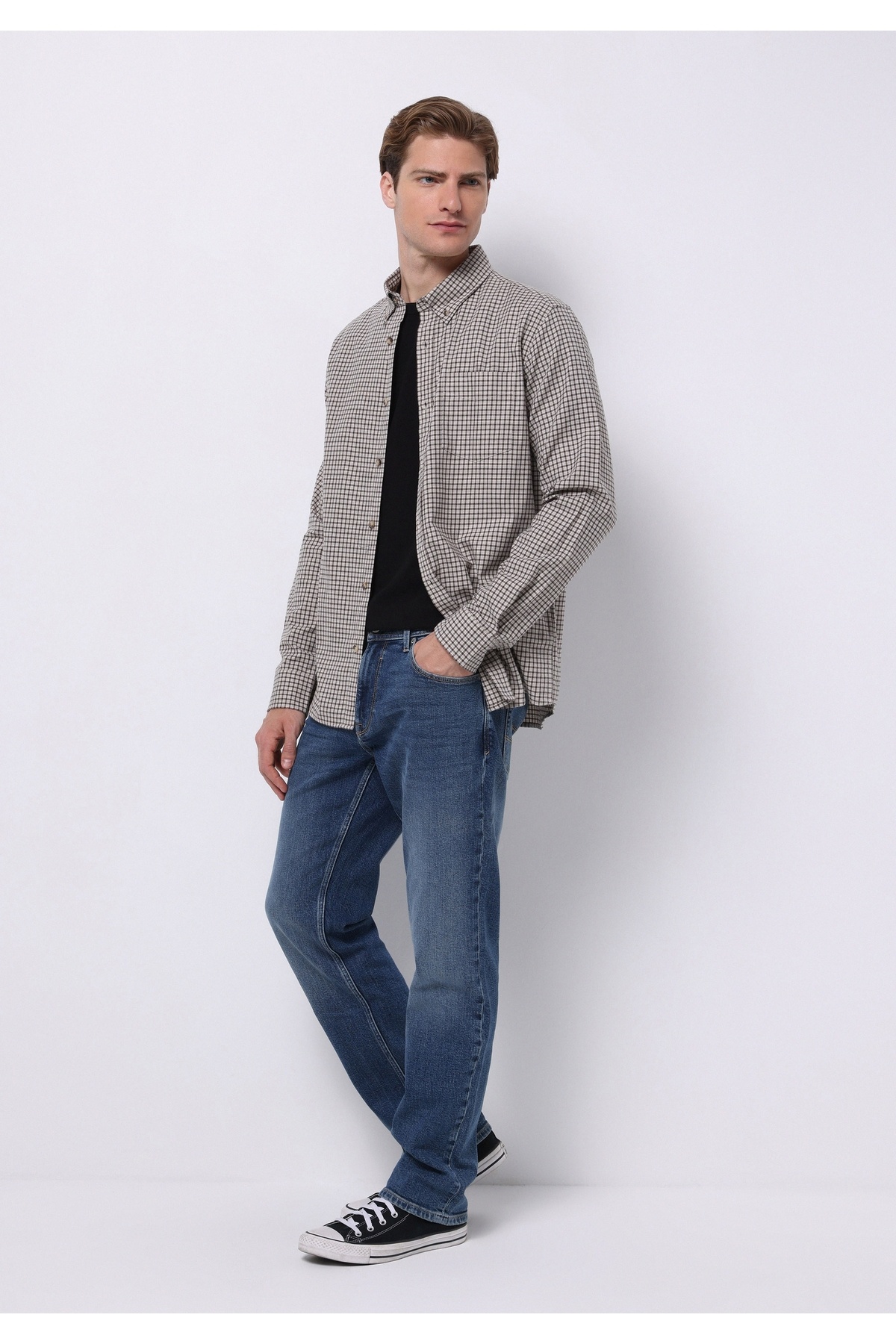 خرید اینترنتی پیراهن مردانه آستین بلند قهوه‌ای طرح چهارخانه یقه گرد معمولی برند کالینز Colin’s اورجینال از Colin’s نمایندگی ترکیه