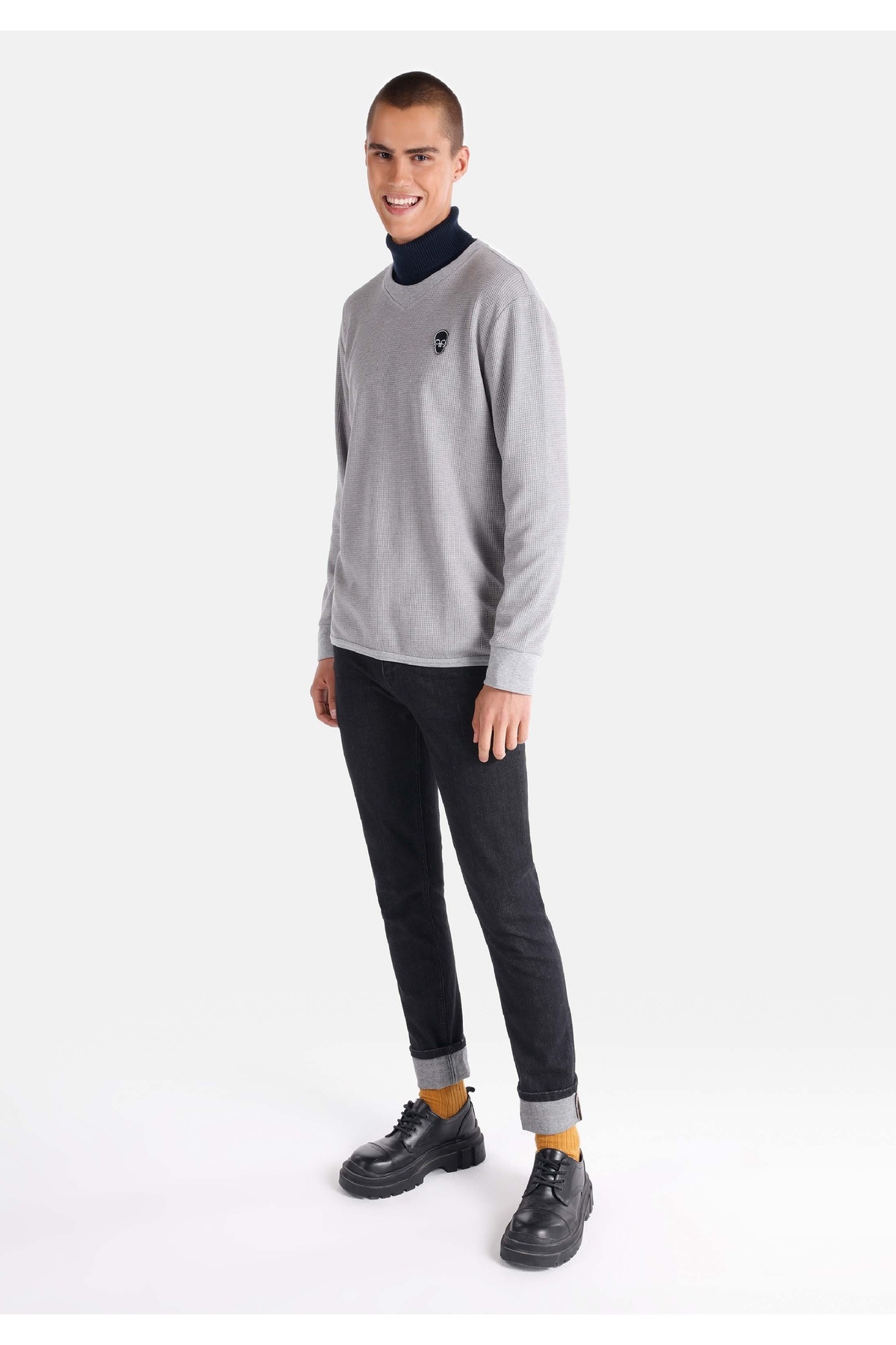 خرید اینترنتی تیشرت آستین بلند مردانه خاکستری ساده یقه گرد معمولی فیت برند کالینز Colin’s اورجینال از Colin’s نمایندگی و فروشگاه معتبر ترکیه