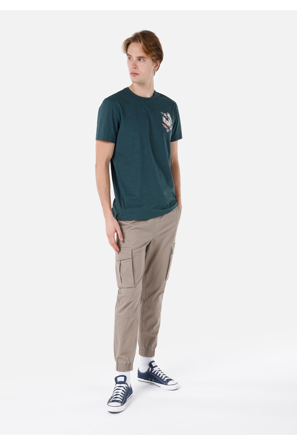خرید اینترنتی تیشرت آستین کوتاه مردانه سبز چاپ شده یقه گرد معمولی CL1068071 برند کالینز Colin’s اورجینال از Colin’s نمایندگی و فروشگاه معتبر ترکیه