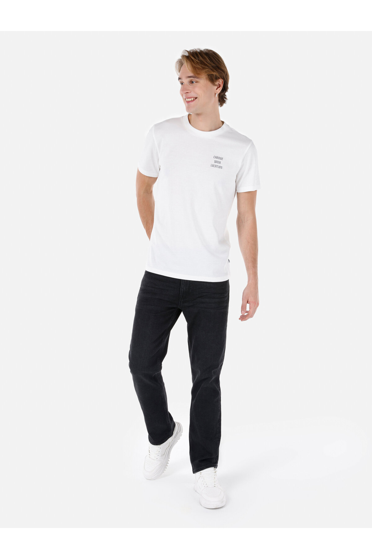 خرید اینترنتی تی‌شرت آستین کوتاه مردانه سفید طرح‌دار یقه گرد معمولی CL1068187 برند کالینز Colin’s اورجینال از Colin’s نمایندگی ترکیه